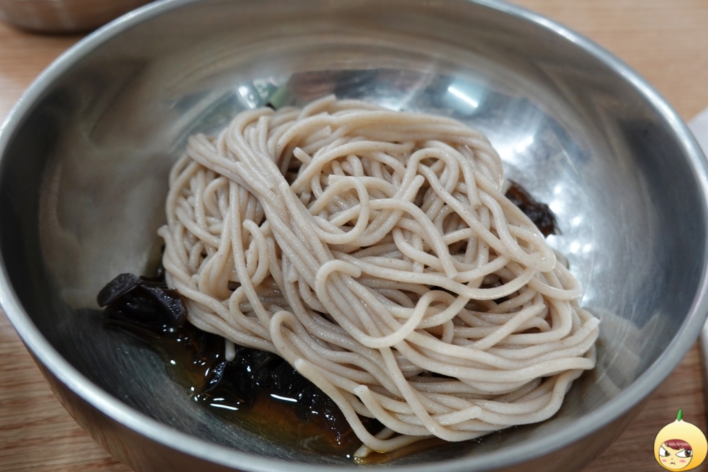 100% 메밀면이라서 그런가 면수부터 다르다. 이건 면을 삶은 물이 아니라, 그냥 메밀차다. 셀프이니 눈치챙기면서 맘껏 마셨다.