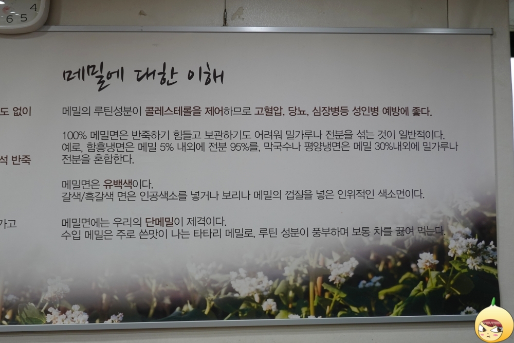 키오스크 옆으로 메밀면을 만드는 기계가 있다. 아침마다 자가제분으로 반죽을 해, 맛과 향이 살아 있단다. 영화를 볼때 기대를 하면 안되지만, 이번에는 살짝 기대를 해본다. 왜냐하면 오기 전에 엄청난 검색으로 통해 정보를 많이 알고 왔기 때문이다.
