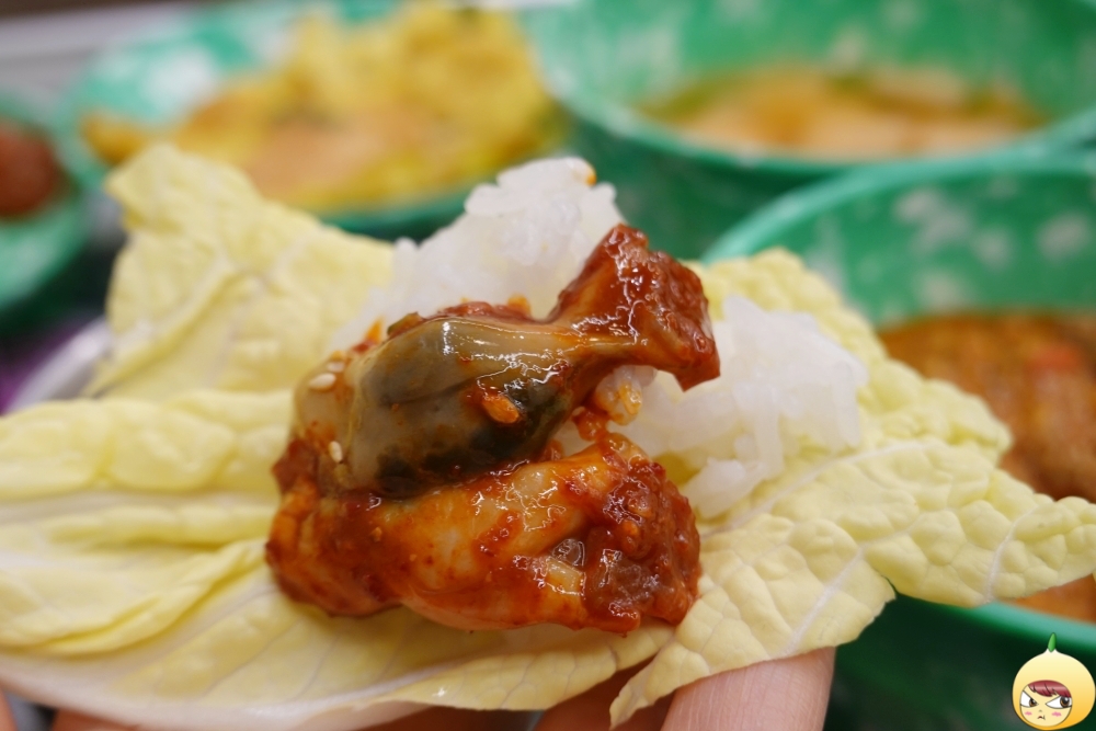 오이대신 알배추는 신의 한수다. 왜냐하면 쌈장이나 강된장 없이 그저 배추 + 밥 + 어리굴젓 = 겁나 잘 어울림. 그나저나 집에서 어리굴젓을 먹을때 그냥 먹었는데, 앞으로 참기름은 필수다. 자칫 강한 굴향으로 질릴 수 있는데, 참기름이 있어 양념까지 먹게 된다.
