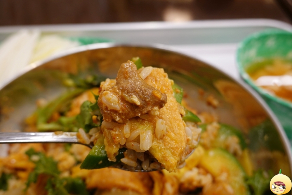 굴과 함께 밥을 더 먹고 싶었지만, 애호박강된장 덮밥을 먹어야 하니 남은 밥을 다 쏟았다. 계란후라이가 없으니, 반찬으로 나온 옛날소시지도 넣는다. 강된장에는 고기와 감자, 표고버섯 등이 들어 있다. 과하게 짠맛은 아니지만, 그래도 강된장이니 간을 보면서 밥을 비빈다.