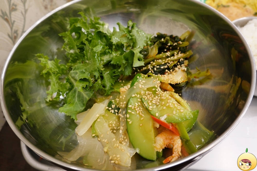 건새우가 들어간 애호박 볶음에 열무김치 그리고 채소가 들어있다. 여기에 밥을 넣고, 강된장을 넣고, 쓱쓱 비비면 된다. 그나저나 분명히 어리굴젓을 주문했는데 없다. 주문이 잘못 들어갔나 싶어 주인장에게 물어보니, 잠시만 기다려 달란다. 예전같았으면 뜨거운 밥을 대접에 넣고 마구마구 비비기 시작했을 거다. 하지만 참아야한다. 왜냐하면 따끈한 밥 위에 어리굴젓 한 점을 해야하니깐.