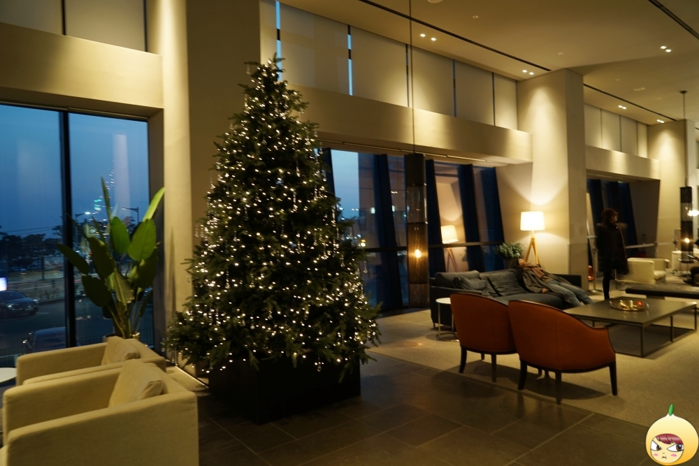 로비인 듯, 카페인 듯, 역시 호텔답게 시설이 좋다. 커다란 창문 밖으로 해운대 바다가 보이고, 밤이 찾아오니 크리스마스 트리는 반짝반짝 빛이 난다. 함께 온 일행들이 있지만, 저녁 먹을때까지는 개인 시간이다. 짐을 후다닥 방에 던져놓고 동백꽃을 보러 가야한다. 고로 지금 필요한 건, 스피드다.