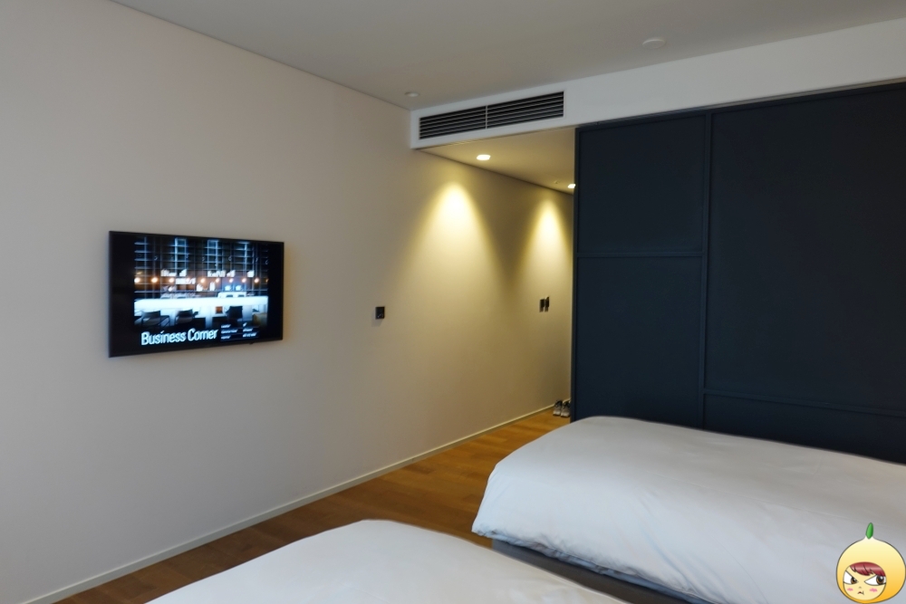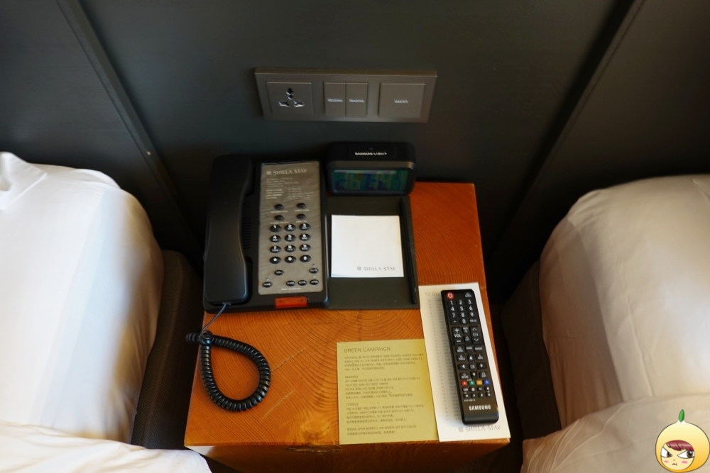 침대 옆에 있는 벽을 밀면 옆으로 움직인다. 그런데 특이한 건, 벽을 밀어서 왼쪽 사진 속 열려있는 공간을 닫게 되면, 벽으로 가려져있던 욕실이 짠하고 나타난다. 룸메이트가 가족이라면 모를까? 욕실이 훤히 보이는데 문을 이동시킬 수 없다. 고로 문이 열리는 것만을 확인하고는 처음에 봤던 그대로 뒀다. 리모콘 아래 채널표가 있어도, 어디서 뭐하는지 한번은 꼭 리모콘으로 전체 채널을 확인한다.
