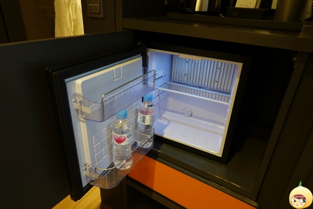 원두 커피와 차가 있지만, 비닐포장이 되어 있는 종이컵이라서 마시지 않았다. 대신 물만 마셨다. 냉장고에는 딸랑 물만 넣었고, 그 아래에는금고가 있다고 룸메가 알려줬다.