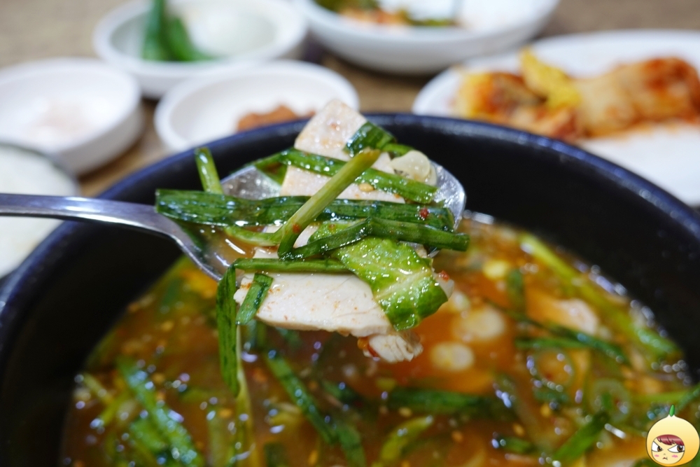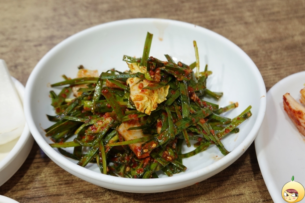 혼밥이니 반찬은 딱 적당히 나왔다. 부추무침은 국밥과 함께 먹어야 하므로 잠시 그대로 두고, 뜨거운 흰쌀밥에 배추김치 한 조각. 알맞게 익은 김치가 입맛을 확 돋운다.