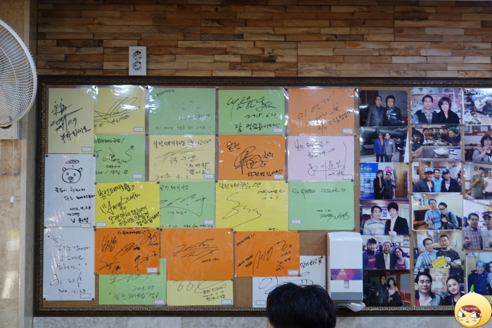 부산역에서 가까워서 그런 것일까? 평일이고 1시가 넘었는데도 여전히 줄이 있다. 지하에도 공간이 있어, 생각보다 줄은 빠르게 줄어들고 있다. 매장 사진에서 주인장이 손을 벌리고 있는건, 사진을 찍지 마시오가 아니라 뒤에 온 손님에게 자리를 안내하는 모습이다. 빨리 찍고 나와야 해서 이래저래 따질 겨를이 없었다. 벽면 가득 연예인 사인에 사진까지 이웃님 블로그를 보고 오긴 했지만, 나름 잘 찾아온 거 같다.