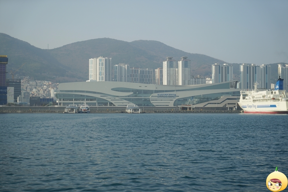 크루즈는 규모가 어마해서 전용 터미널은 필수라고 한다. 크루즈 부두 뒤로 돌고래 모양의 건물이 나오는데, 부산항 국제여객터미널이다.