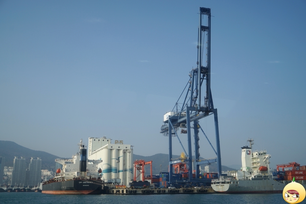 신감만컨테이너 터미널이다. 다른 터미널과 달리 이곳을 기억하는 건, 아픔이 있기 때문이다. 다른 푸른색 크레인과 달리, 유독 혼자만 녹색인데는 다 이유가 있다. 2003년 태풍 매미가 이곳을 덮쳤고, 녹색 크레인을 제외하고 다 붕괴됐단다. 지금은 복구가 됐지만, 몇 십억을 한번에 날려버리다니 자연은 때론 너무 무서운 존재다.
