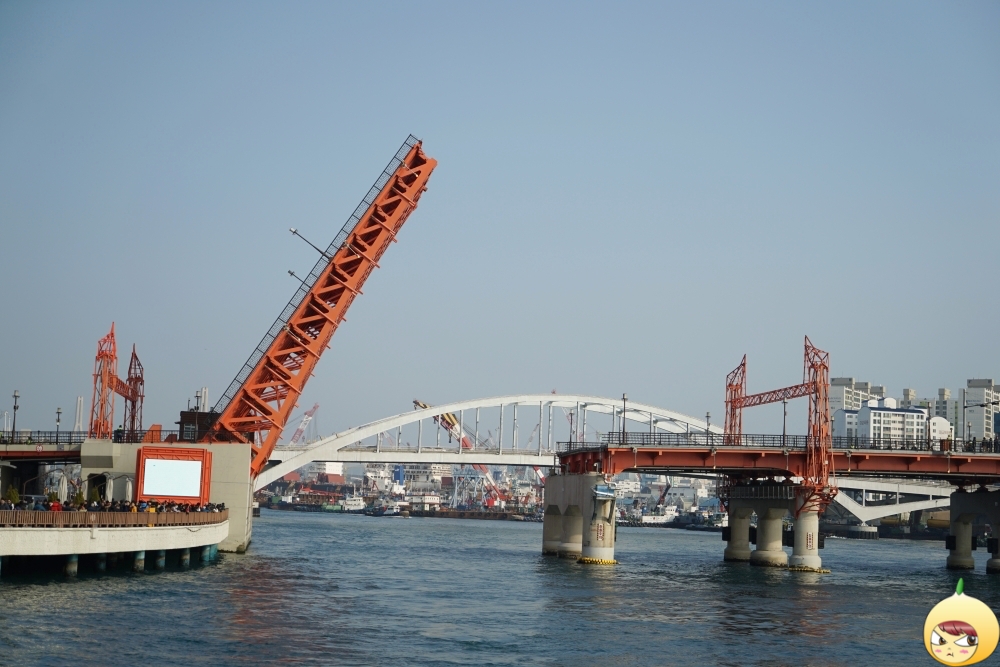 영도다리 도개 현장을 배에서 지켜봤다. 이거 육지에서 봤을때와는 완전 다르다. 배가 지나가고 있는데 그 옆으로 커다란 다리가 올라간다. 항만투어 중 딱 2번 갑판으로 나올 수 있는데, 그중 하나가 바로 영도다리 도개 현장이다. 감탄이 나오는 그런 멋진 장면은 아니지만, 확실히 신기하기는 하다.