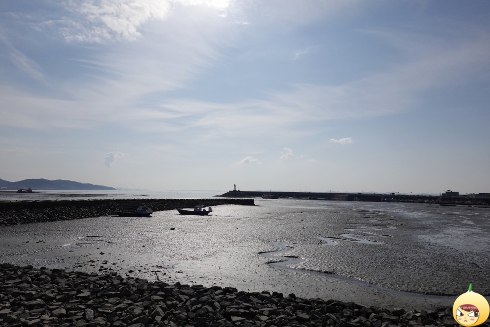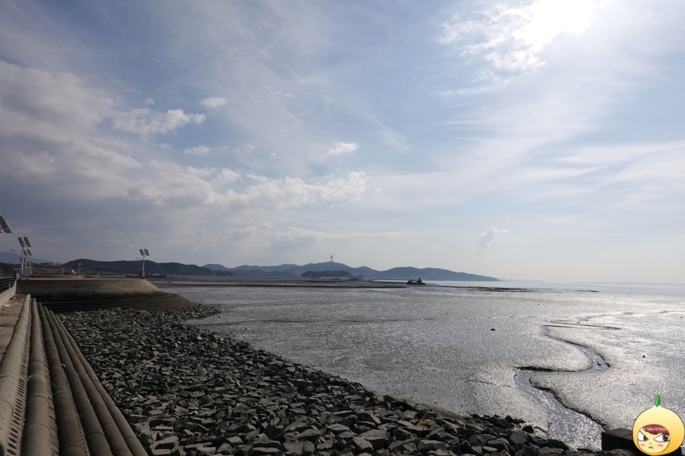 바다 구경을 하고 싶었으나, 썰물때라서 갯벌만 하염없이 봤다. 금강산도 식후경이라고 하던데, 새조개 샤브샤브를 든든하게 먹고난 후라서 풍경은 그닥 눈에 들어오지 않는다. 더구나 고소한 새우튀김 향을 맡고 있으니, 입으로는 멋지다고 하면서 눈과 코는 튀김이 들어 있는 검은 봉다리에 쏠렸다.
