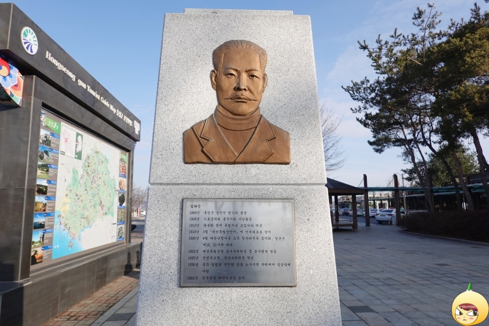 최영 장군, 매죽헌 성상문, 만해 한용운, 김좌진 장군은 홍성 출신의 위인이다. 역 앞에 흉상이 있으니 바쁘더라도 한번쯤 보고 갔으면 좋겠다. 그 옆으로 홍성 8경이 나와 있는데 용봉산, 홍주읍성과 여하정, 만해한용운 생가, 그림이 있는 정원, 오서산, 남당항, 김좌진장군 생가 그리고 궁리포구다. 이중에서 남당항만 가봤다. 홍성특산품으로는 맛있는 녀석들에 나왔던 홍성한우, 광천토굴새우젓과 광천재래맛김 그리고 홍성대하와 홍성새조개가 있다. 대하는 예전에 먹어봤으니, 이번에는 새조개를 먹었다.