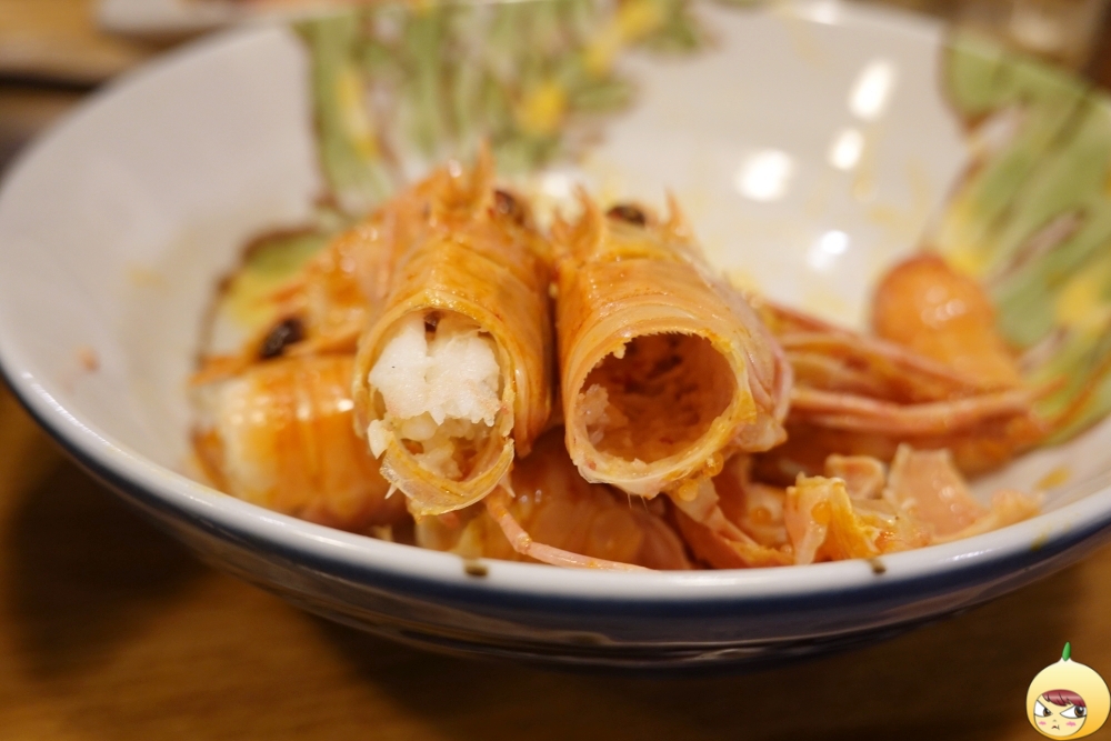 어렵사리 껍질을 제거하고 있는데 주인장이 쉬운 방법이 있다고 한다. 가위를 이용해 머리와 몸통을 나누고, 꼬리는 가위를 이용해 자른다. 그다음 남은 몸통에 젓가락을 넣어 쭉 밀어주면 새우살이 쏙 빠진다. 그런데 손과 치아만을 이용한 나의 방법은 새우 형태를 온전히 살릴 수 있는데, 주인장이 알려준 방법은 새우살이 으깨져서 나온다. 딱딱한 딱새우 머리를 먹을때는 도구를 써야하는데, 젓가락을 이용해 긁어내면 된다. 그래야 고소한 내장과 살을 야무지게 먹을 수 있다.