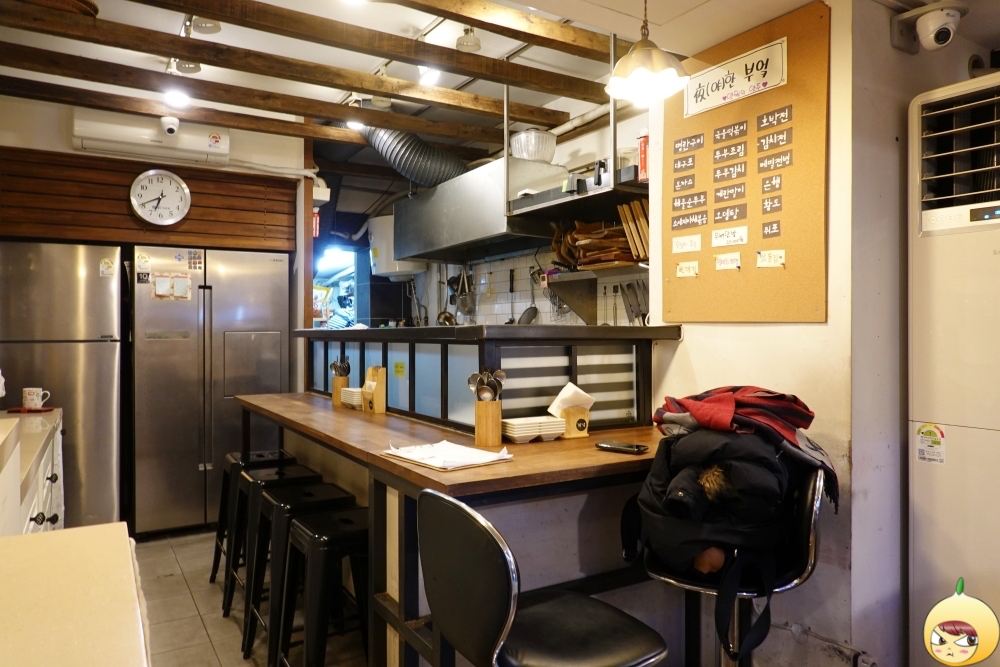 식당명은 부엌이다. 그런데 시즌4는 뭘까? 이번이 처음이라서 직접 물어보지 못했지만, 시즌에 따라 메뉴를 달리해서 붙여진 이름이 아닐까 싶다. 글을 쓰기 전에 검색을 해보니, 에스본부에서 하는 생방송 투데이에 나왔던 곳이다. 방송에 소개된 음식은 스테이크 김치찌개였다. 그런데 작년에 있던 메뉴가 지금은 없는 걸로 봐서는, 작년에는 시즌3였고 올해는 시즌4인가 보다. 창가에 바테이블이 있지만, 주방쪽 바테이블에 앉았다.