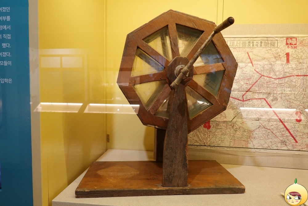 처음에는 무엇에 쓰는 물건인가 했다가, 설명문을 읽고 나서야 알게됐다. 너의 이름은? 은행알 추첨기. 중학교 배정을 위해서는 요녀석(?)이 꼭 필요했다고 한다. 학생들이 직접 추첨기의 손잡이를 잡고 오른쪽으로 두번, 왼쪽으로 한번 돌리면 추첨기 구멍으로 은행알이 나왔고, 자신이 입학할 중학교 번호가 적혀있었다. 그래도 남이 아니라 내가 직접 돌리니 나빠도 할 말은 없었을테고, 왠지 로또보다 더 쫄깃했을 듯 싶다.