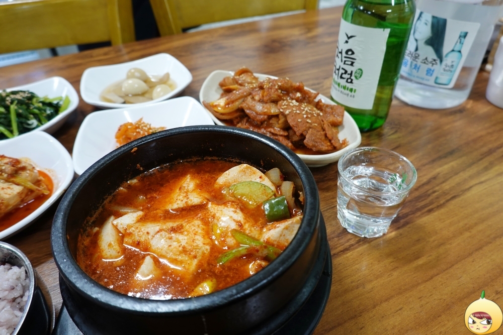 며칠(사실은 3일) 후 다시 찾았다. 이번에도 늦게 가니 해물순두부는 당연히 없을 줄 알았는데, 이번에는 있단다. 둘 다 먹고 싶고, 여기에 제육볶음은 좀 더 먹고 싶다고 하니, 제육볶음만 주문하면 만원인데 그 가격에 맞춰주겠단다. 그리하여 저번에 왔을때보다 고기 양이 늘었다.