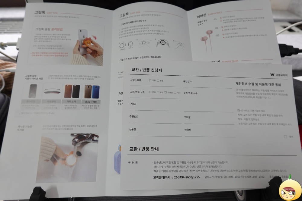 교환 반품 신청서는 쓸 일이 없을 거 같다. 그나저나 흐르는 물로 세척 후 자연 건조하면 재사용이 가능하단다. 접착력이 떨어지면 어쩌나 했는데, 걱정하지 않아도 되겠다.