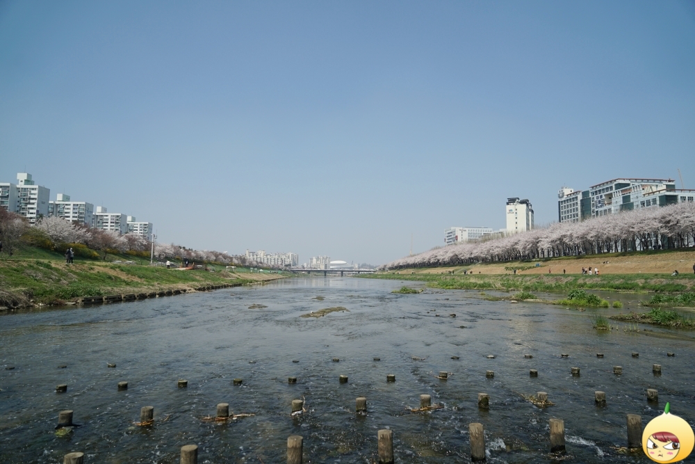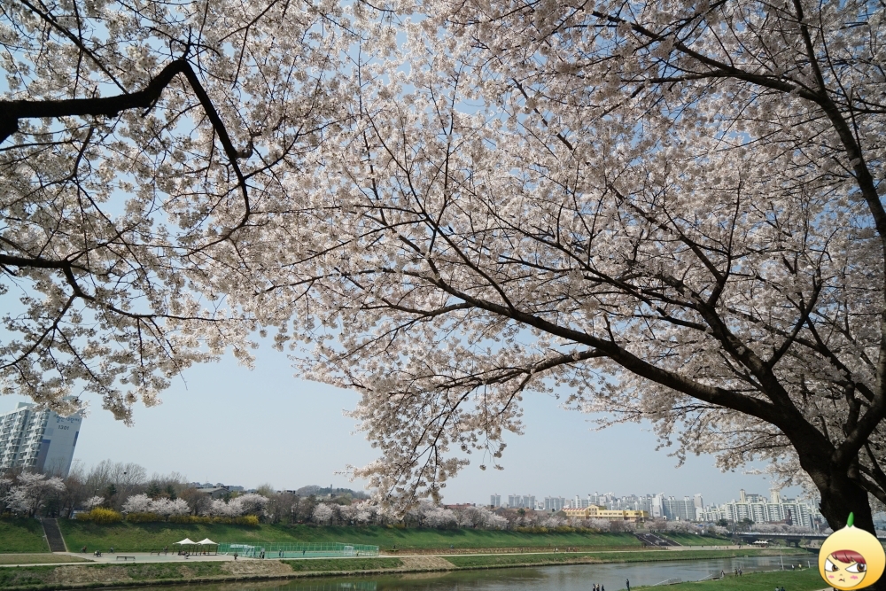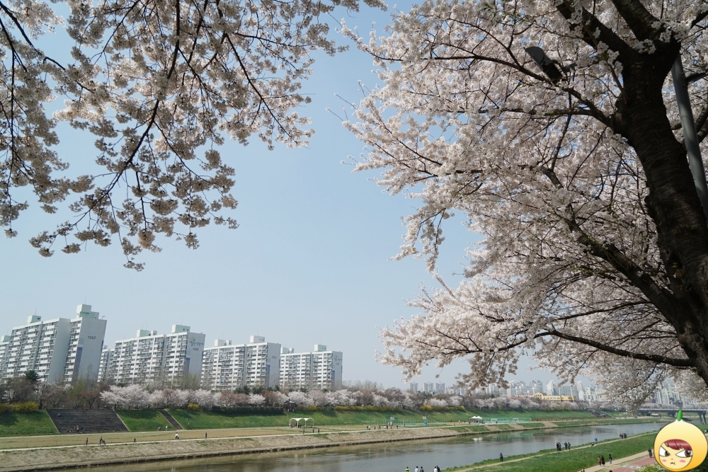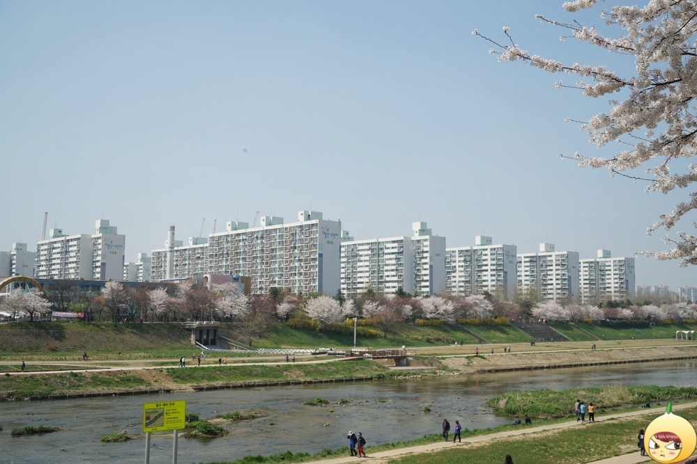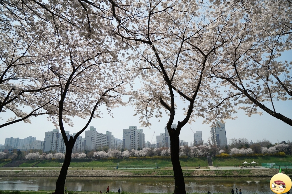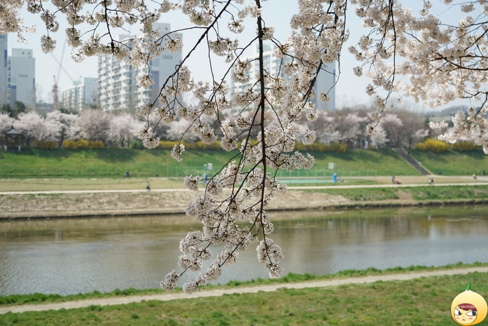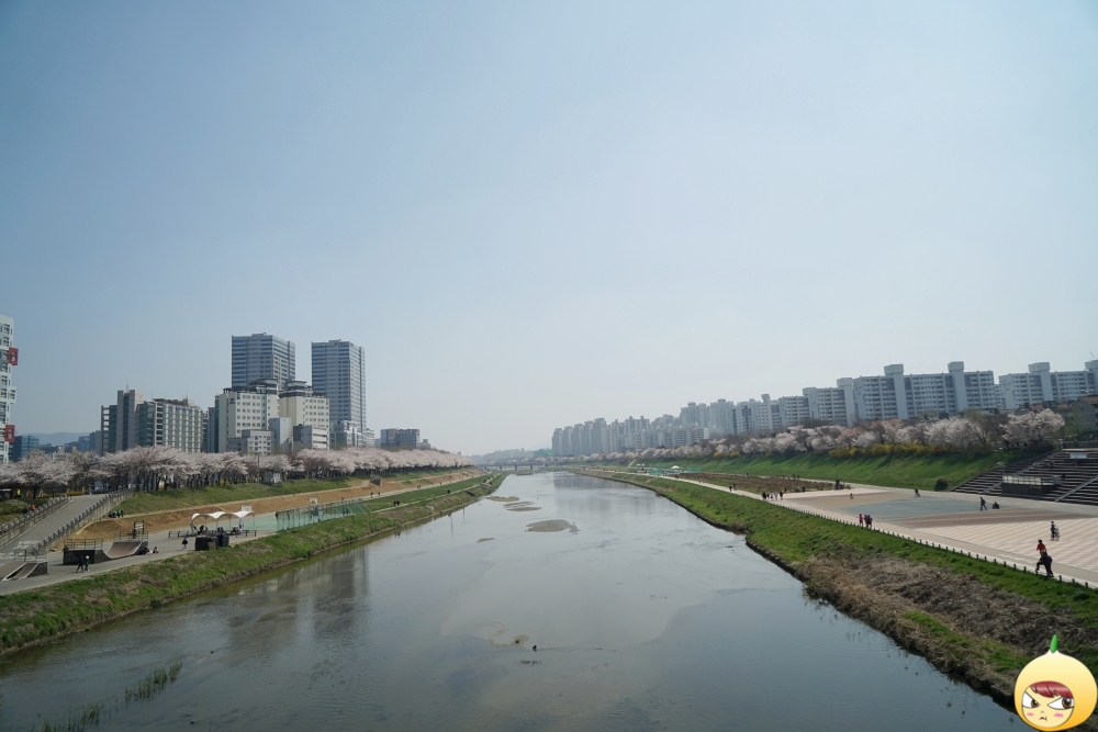 현재 서 있는 곳은 경기도 광명시 철산동이다. 건너편은 서울시 금천구 가산동이다. 양쪽 다 안양천 제방길이지만, 벚꽃구경은 건너편에서 할 예정이다. 왜냐하면 건너편 벚꽃이 더 많아 보이니깐.