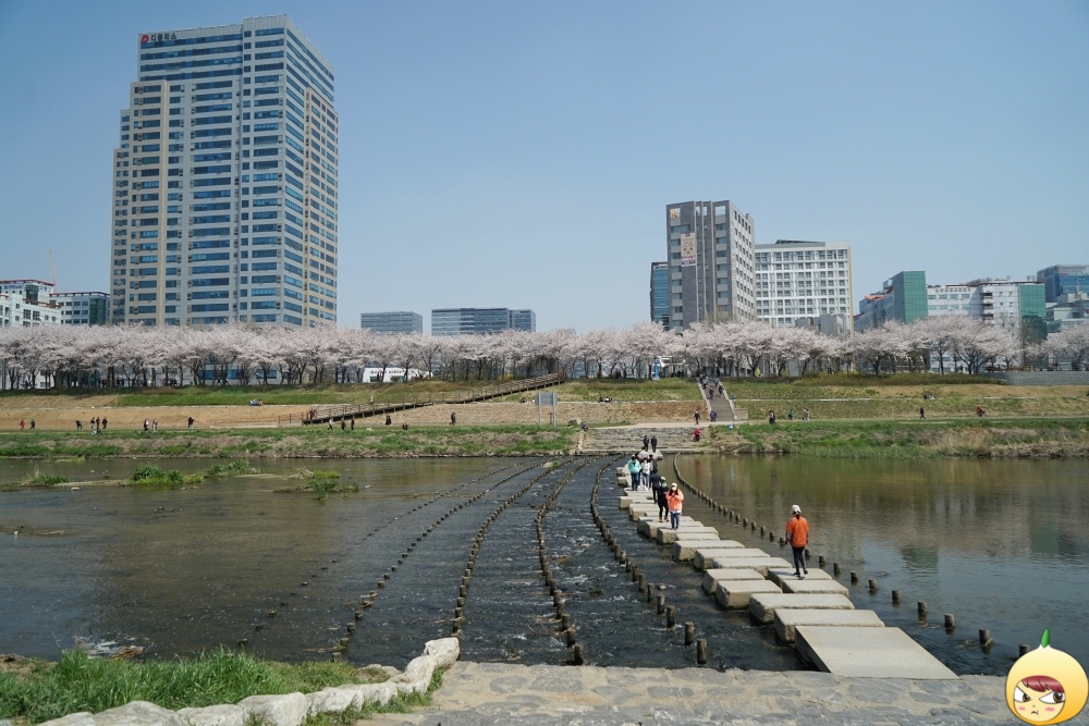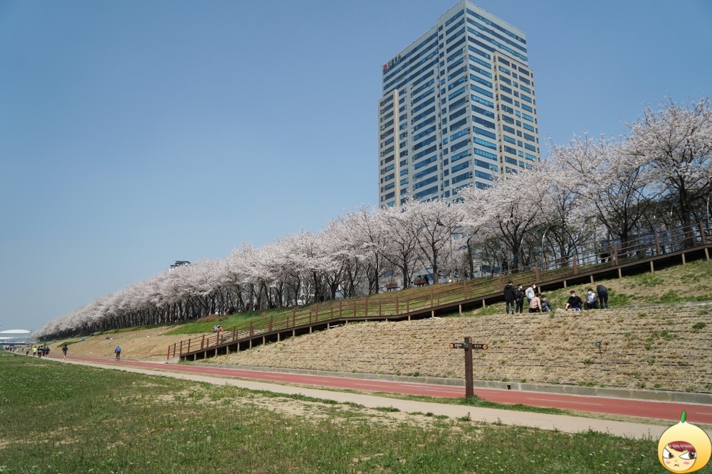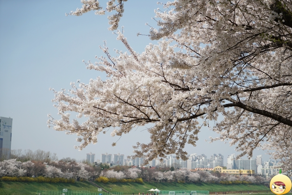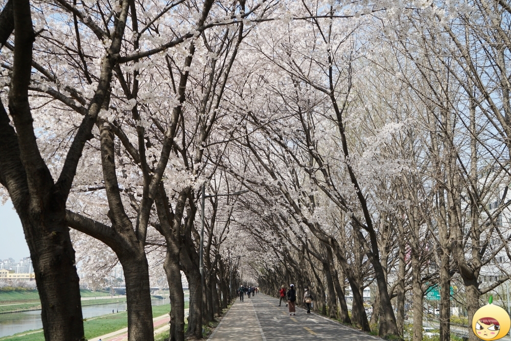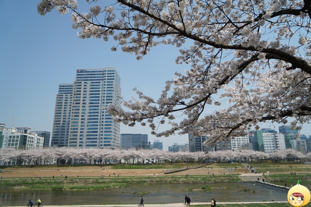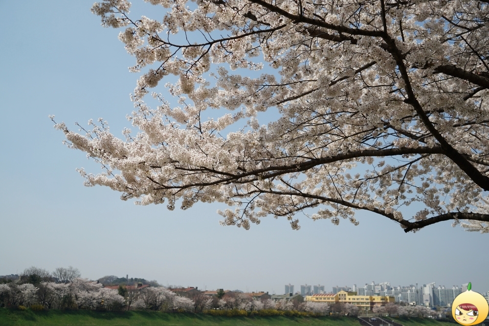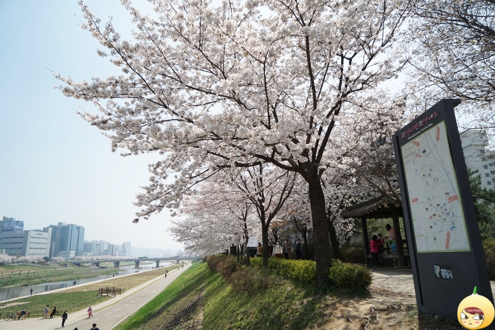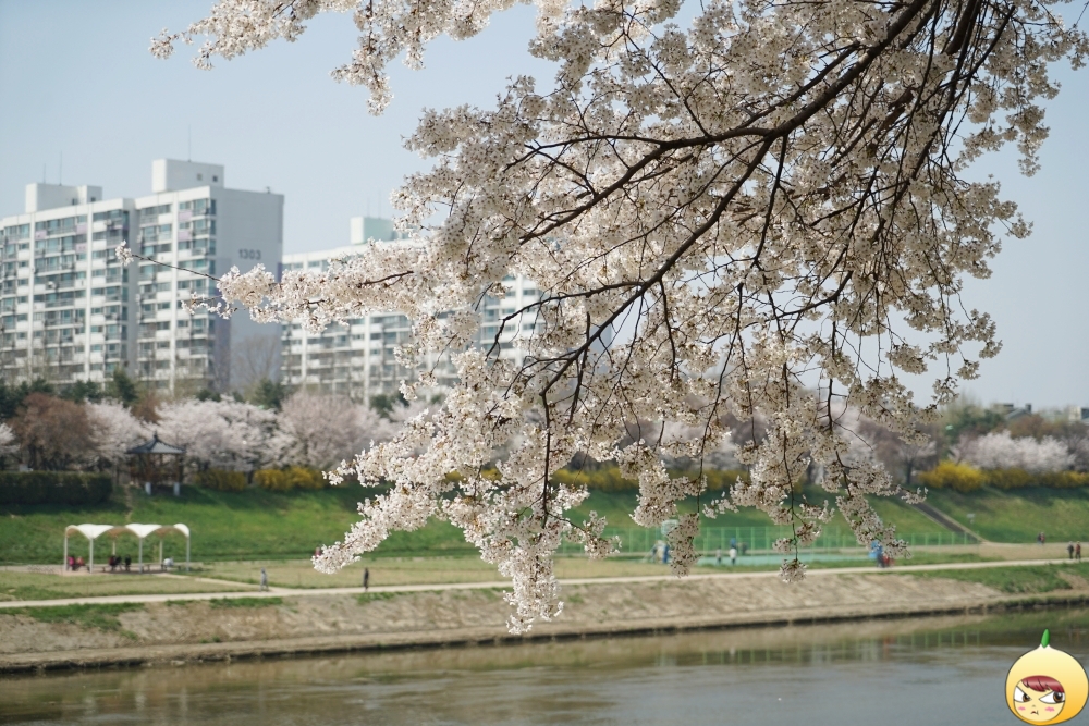 현재 서 있는 곳은 경기도 광명시 철산동이다. 건너편은 서울시 금천구 가산동이다. 양쪽 다 안양천 제방길이지만, 벚꽃구경은 건너편에서 할 예정이다. 왜냐하면 건너편 벚꽃이 더 많아 보이니깐.
