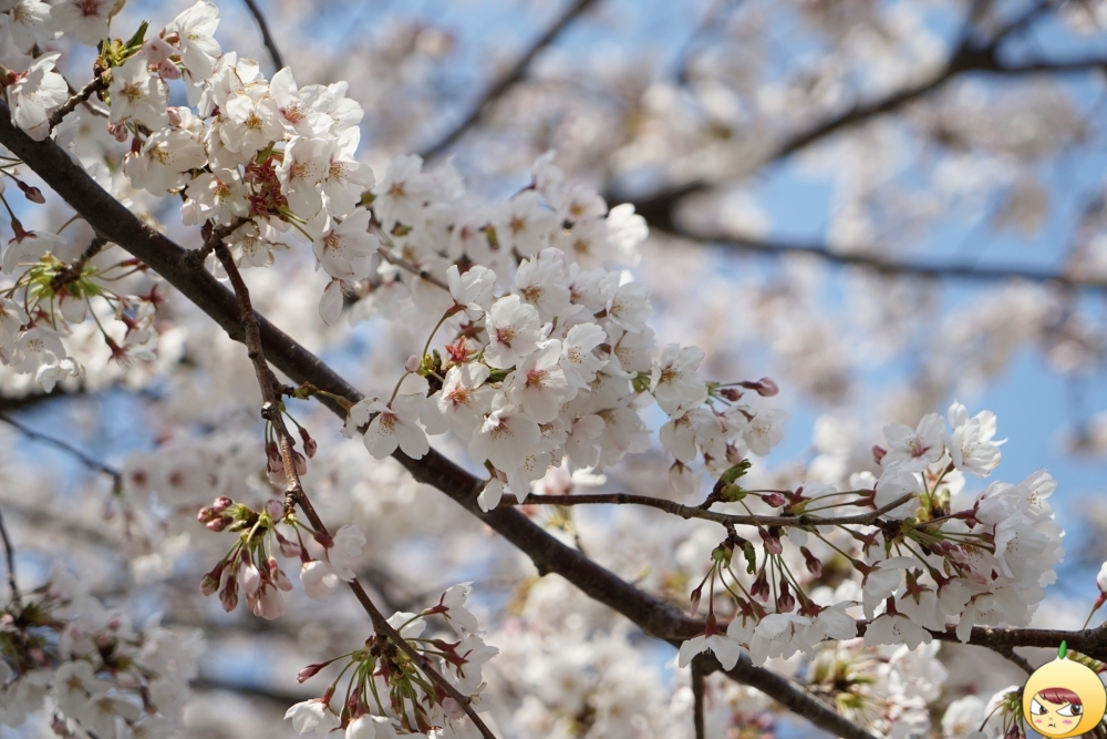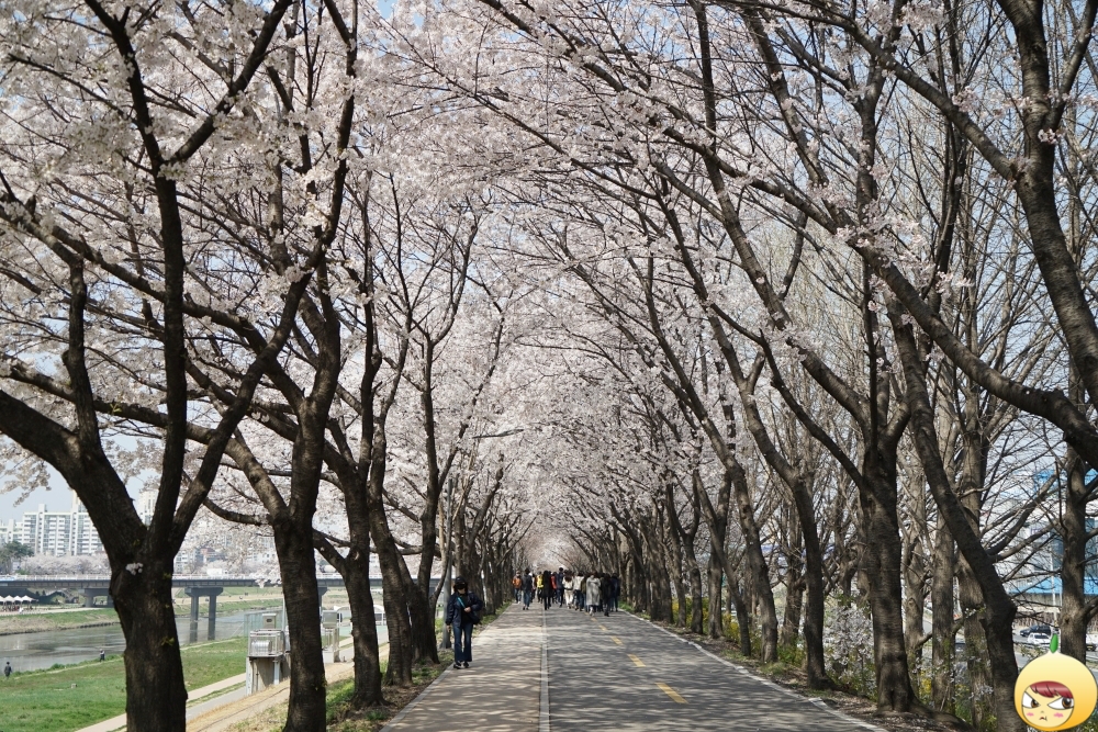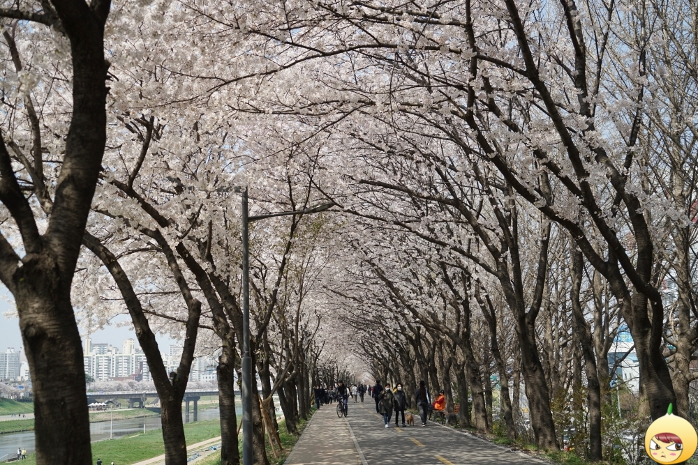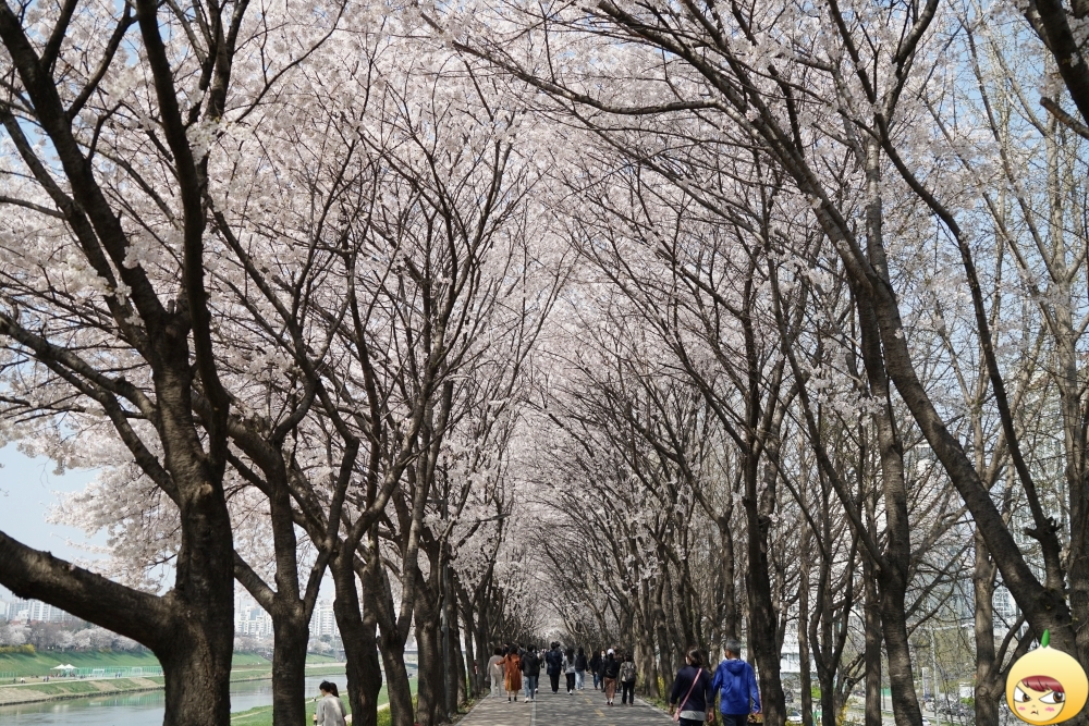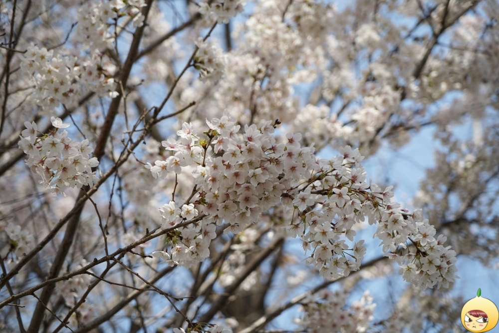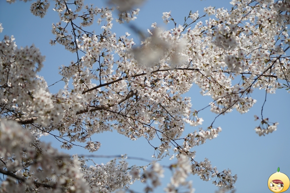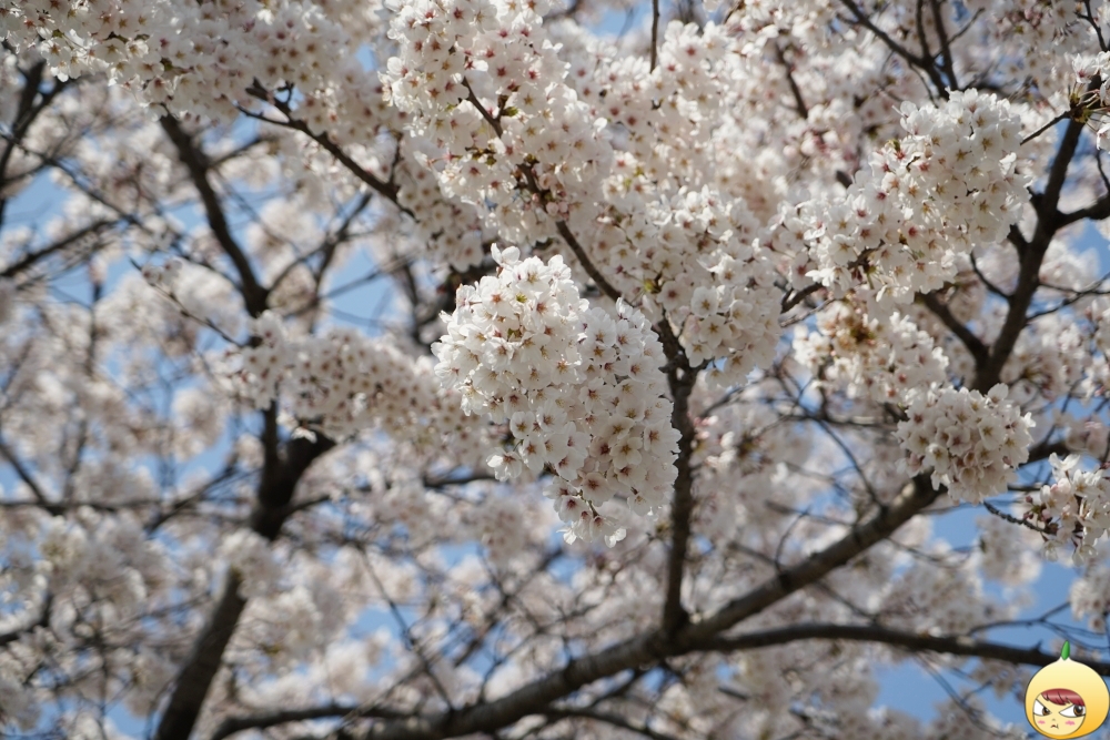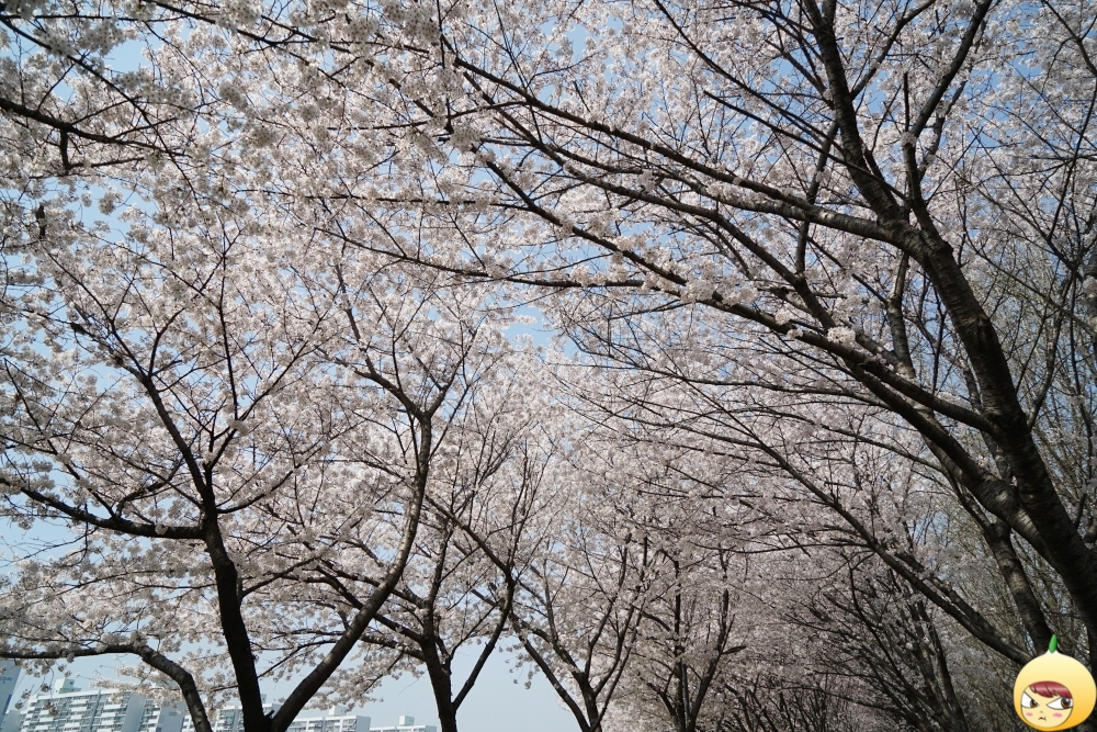 벚꽃 터널은 계속 이어진다. 산들산들 봄바람이 불고 있지만, 좀 더 강하게 불었으면 좋겠다. 영화 4월 이야기처럼 벚꽃비가 내리면 딱 좋을텐데, 이제 막 만개라서 꽃들이 떨어지기 싫은지 가지에 딱 붙어있다.