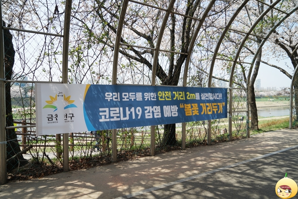 안양천(목동교, 신정교, 오목교 등)은 벚꽃 명소로 꽤 유명한 곳이다. 제방길을 따라 이어진 벚꽃이 장관이고 절경이다. 예전같으면 자치구마다 안양천벚꽃축제를 했을 거다. 석촌호수와 여의도는 통제를 한다지만, 안양천 제방길은 별다른 소식이 없다. 그런데 목동부근 안앙쳔 제방길이 폭이 좁아 사회적 거리두기를 하기에 살짝 부담스럽다. 고로 여유롭게 걸을 수 있는 철산대교와 광명대교 구간을 선택했다. 사실은 가지 않는 게 가장 좋지만, 딱 한번만!!!