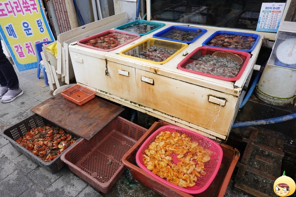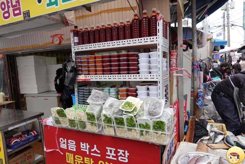 커다란 수조는 없고, 그저 다라이(?)마다 팔딱팔딱 뛰는 활어가 그득이다. 중앙시장은 저녁에도 운영을 한다고 하니, 횟감은 이따가 사기로 했다. 아직 숙소에 가기 전이라, 매운탕은 힘들겠지 했다. 그런데 숙소에 인덕션이 있으니, 회와 함께 매운탕 양념도 함께 구입하기로 했다. 양념류를 따로 팔고 있으니, 굳이 식당에 가지 않고 회를 사고 숙소에서 먹으면 된다.