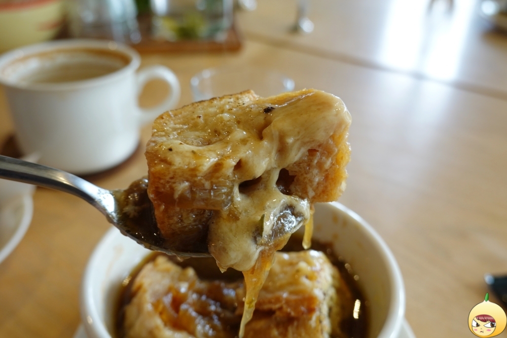 커피와 어니언스프가 같이 나와야 하지만, 주인장에게 라떼부터 달라고 했다. 우선 라떼로 꽉 찬 위를 비워야했기 때문이다. 확실히 우유가 들어갔다고, 커피가 덜 쓰다.