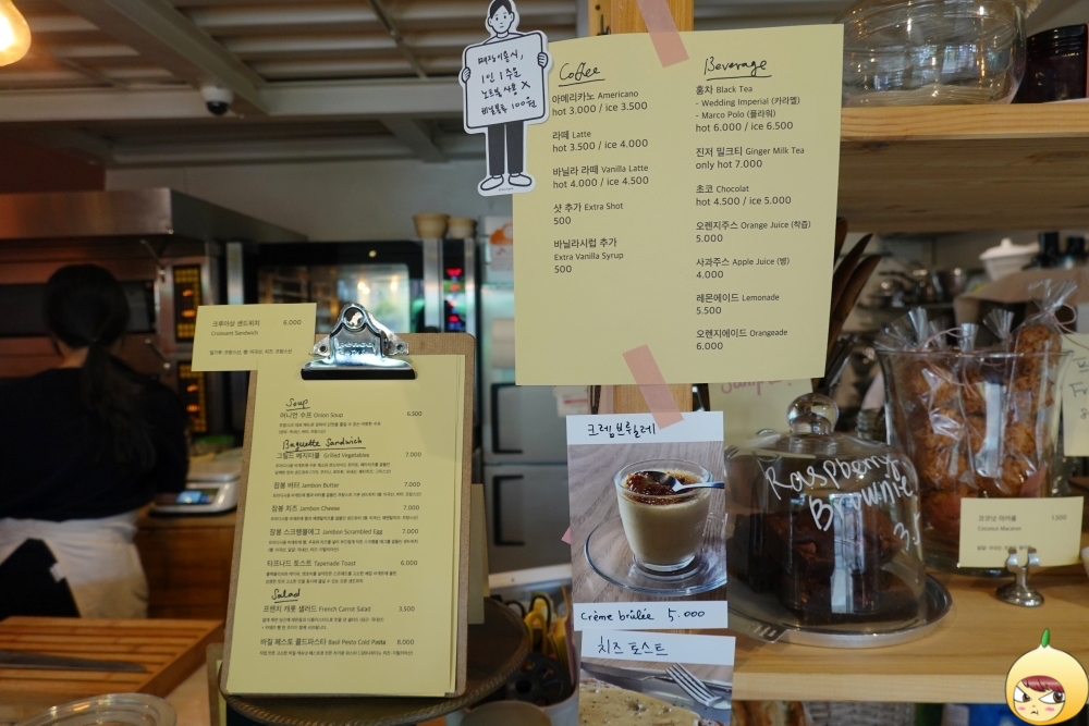 커알못이지만, 방금 전에 밥을 먹었기에 따뜻한 라떼(3,500원)를 주문했다. 그리고 혹시나 싶어 옆에 있는 메뉴판을 봤는데, 어라~ 어니언스프(6,500원)가 있다. 작년 겨울 어니언스프를 먹고 반한적이 있기에, 보자마자 바로 주문했다.