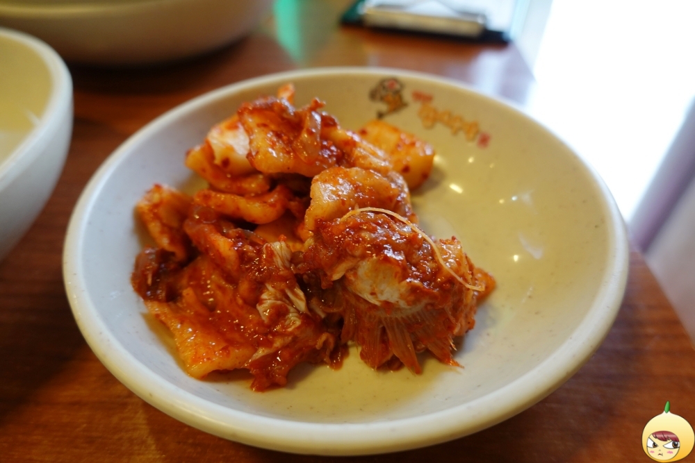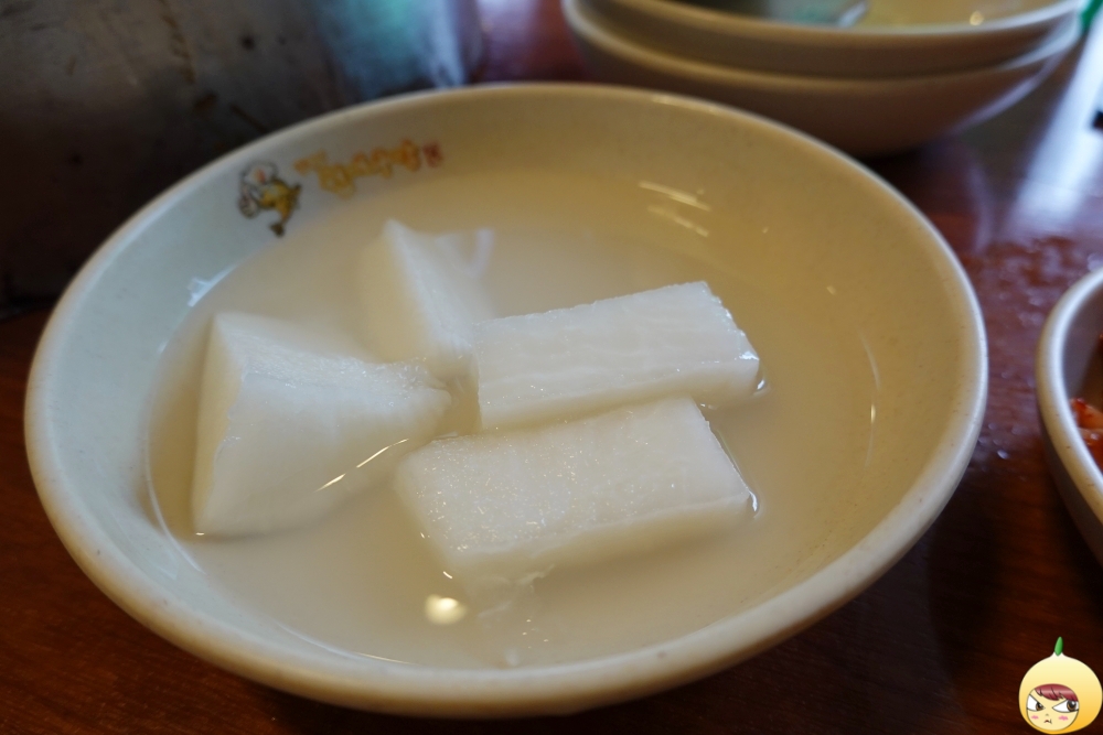 동치미 같은 커다란 무와 이집의 시그니처인 대구 아가미로 만든 장재젓 무김치가 나왔다. 젓갈로 만든 무김치라서 짠맛이 강했지만, 감칠맛이라고 할까나? 맛이 오묘하다. 물컹하기도 하고, 딱딱하기도 하고, 젓갈 특유의 냄새도 나고 아무래도 호불호가 있을 거 같다. 참고로 나는 호는 60%, 불호는 40%다.