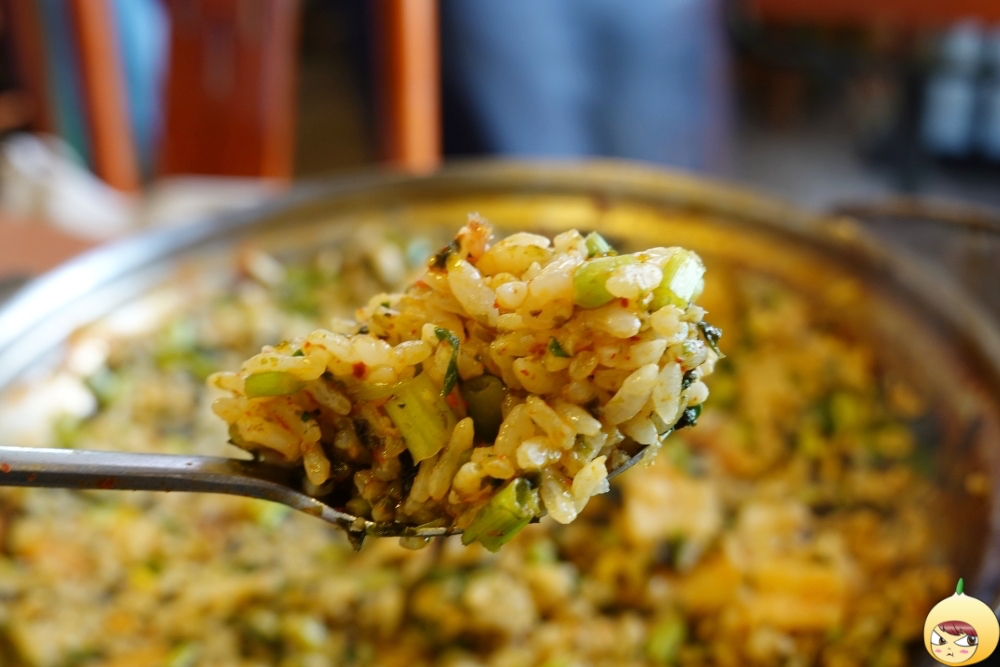 기본적으로 밥이 나오지만, 볶음밥을 놓쳐서는 안된다. 그걸 알고 있기에, 일부러 밥을 적게 먹었다. 따로 볶음밥 1인분을 주문하고, 밥을 볶을때 남아있던 반공기를 더했다. 밥은 직원이 바로 볶아주는데, 이때 기본찬으로 나온 장재젓 무김치를 넣는다. 아마도 이게 이집의 볶음밥 비법이지 않을까 싶다.