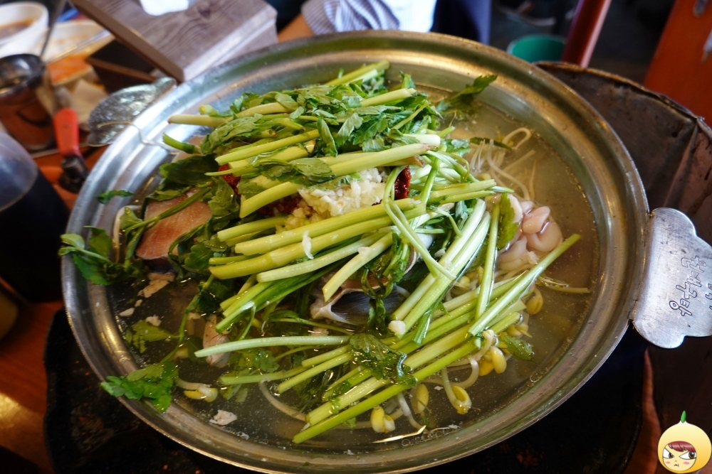 우와, 음식이 나오는 속도가 엄청 빠르다. 하긴 테이블에서 끓여서 먹어야 하니, 재료만 담으면 끝이다. 2인분은 냄비에 미리미리 준비를 해두는 거 같던데, 1인분은 주문하는 사람이 많이 없을테니 아마도 주문을 받고 바로 준비를 하지 않았을까 싶다. 콩나물이 들어 있어 끓기 전에 뚜껑을 열지 말라는 주의사항을 봤기에, 직원이 불을 켜기 전에 양해를 구하고 후다닥 사진을 담았다. 그런데 1인분인데 생각보다 양이 꽤 많아 보인다.