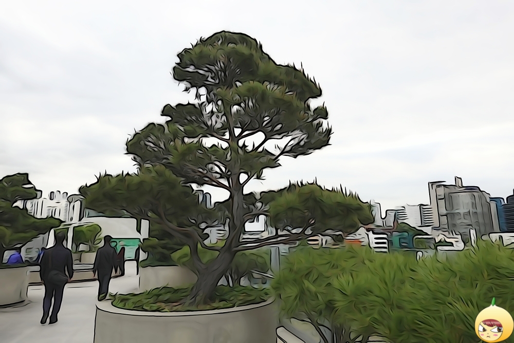 일러스트 모드로 찍으니 좋은 점, 초상권땜에 모자이크 처리를 할 필요가 없다는 거다. 이건 좋으나, 소나무가 소나무같지 않아서 슬프다.