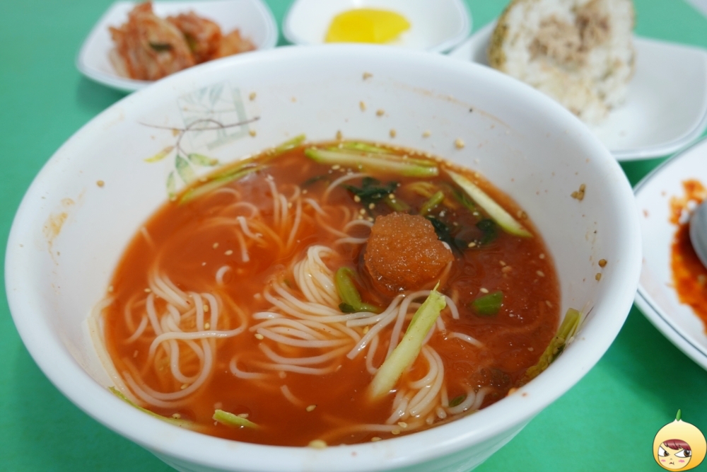 분식집이니 떡볶이, 튀김 그리고 순대(연잎으로 순대를 덮고 있어서 연잎순대인듯)를 먹어야 하지만, 냉 열무국수 개시에 시선이 꽂혔다. 여기를 오느라 20여분을 걸었더니 갈증 나고 땀도 나기에, 이거 다 싶어 냉 열무국수(5,000원)와 참치주먹밥(2,000원)을 주문했다.