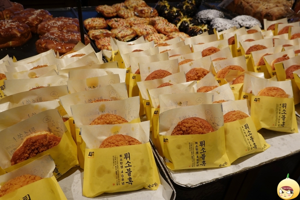 세번째 성심당 명물은 튀김소보로인데 포장지에 튀소불혹이라고 나와 있다. 이름이 바뀌었나 했는데, 튀김소보로가 나온지 불혹이 됐단다. 1980년 출시해 40년동안 인기를 받고 있다니, 튀김 + 소보로 + 팥앙금은 진리다.