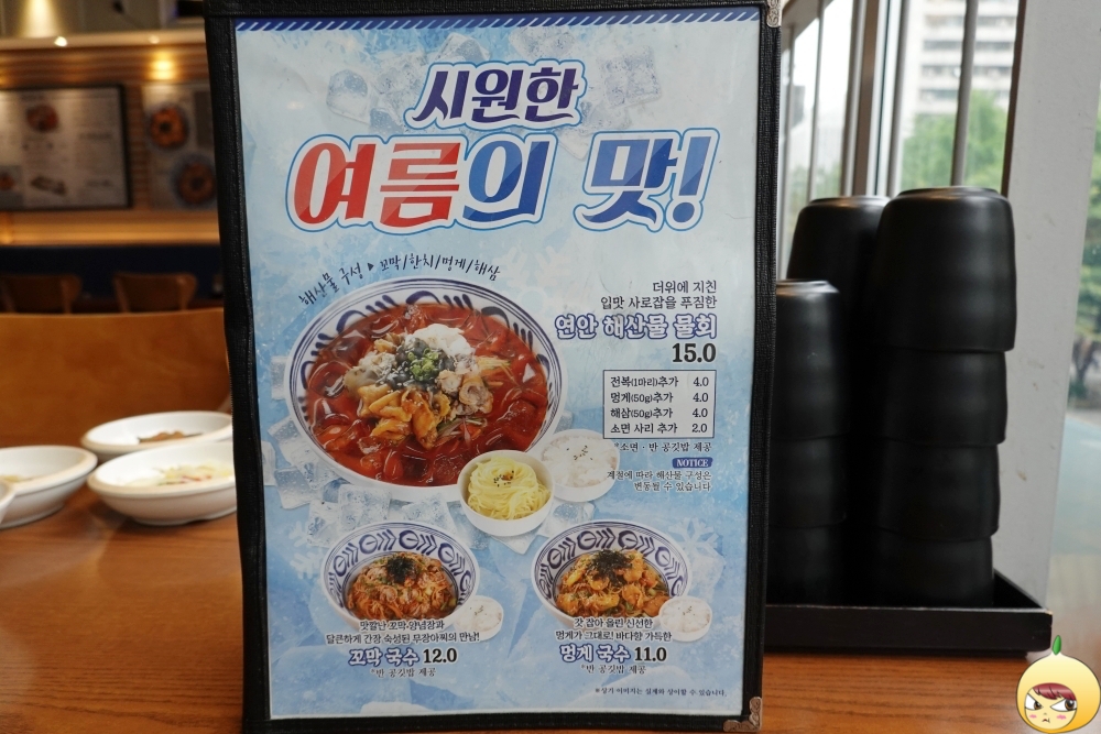 꼬막국수와 멍게국수도 살짝 끌리지만, 애초에 여기 온 목적은 하나다. '연안 해산물 물회(15,000원) 주세요."
