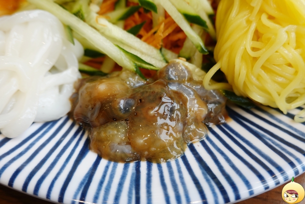 1차로 회만 먹었다면, 2차는 국수랑 함께다. 육수를 촉촉이 머금은 면에 뭘 올려서 좋다. 채소만 올리면 살짝 단조로우니, 해산물과 같이 먹어야 한다. 그나저나 역시 멍게는 멍게다. 무엇을 함께 하듯, 다 멍게화가 된다.
