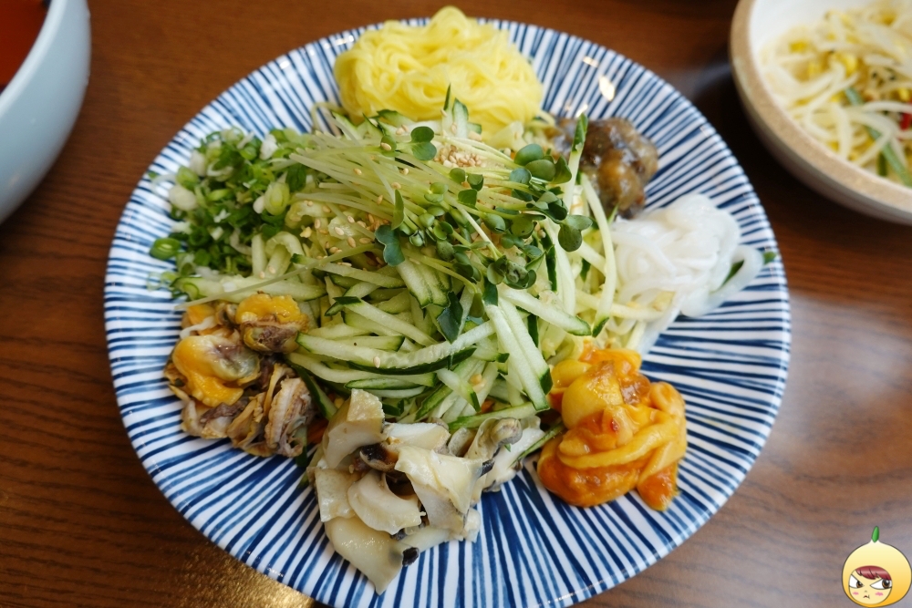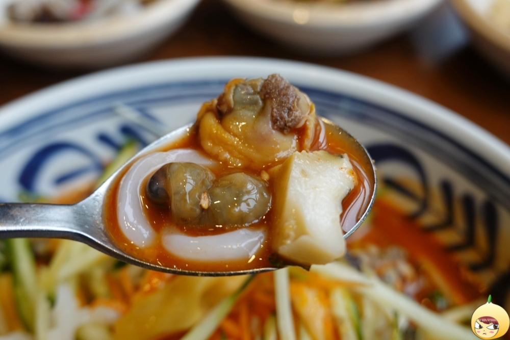 주황빛깔 멍게는 다섯가지 해산물 중 양이 가장 적으나, 깊은 바다 향만은 단연 탑이다. 육수에 넣기 전에 호로록 다 먹고 싶으나 참았다. 왜냐하면 같이 먹어야 하니깐. 지금 메뉴판을 보니, 멍게 추가가 있다. 양이 적다고 살짝 투덜댔는데, 추가를 했어야 했다.