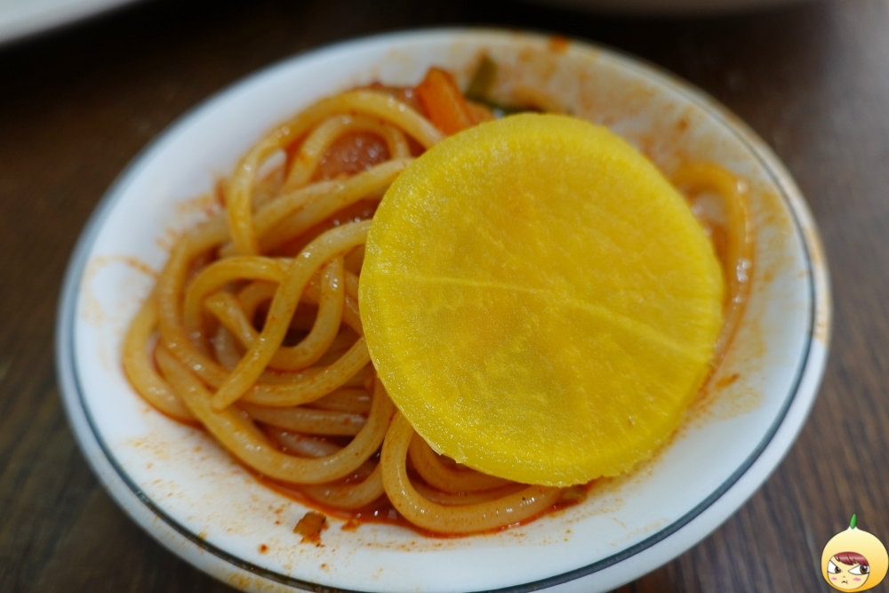 아무래도 대왕오징어를 사용하는 거 같다. 크고 두툼해서 좋은데, 살짝 질기다. 김에 밥을 싸서 먹어봤어도. 오징어에 면을 싸서 먹는 건 처음이다. 매운맛 잡는데 단무지도 꽤 훌륭하다. 새콤달달함으로 인해 매운맛이 밀리기 때문이다.