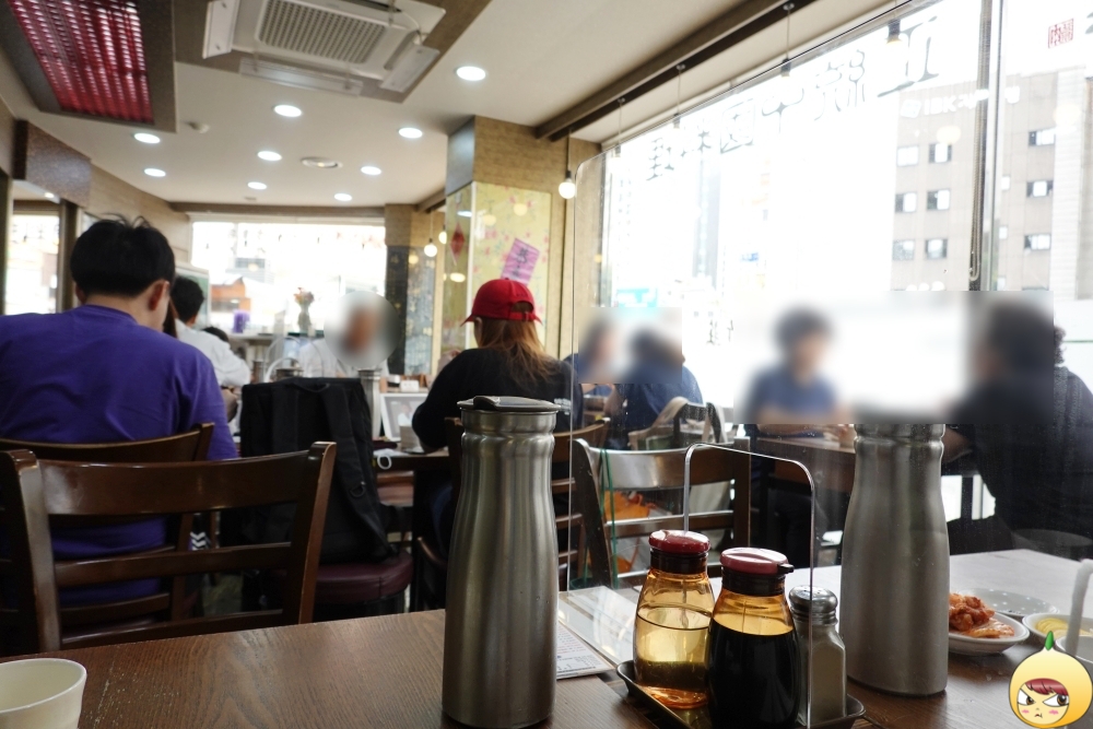 백화점 푸드코트에서 봤던 테이블 칸막이가 여기도 있다. 시험볼때 책상에 가방은 올려봤어도, 칸막이는 어색하고 낯설다. 하지만 코로나시대이니 이제는 적응을 해야 한다. 자차이는 없지만, 개인적으로 식초를 더한 새콤한 단무지에 알싸한 양파는 있다.