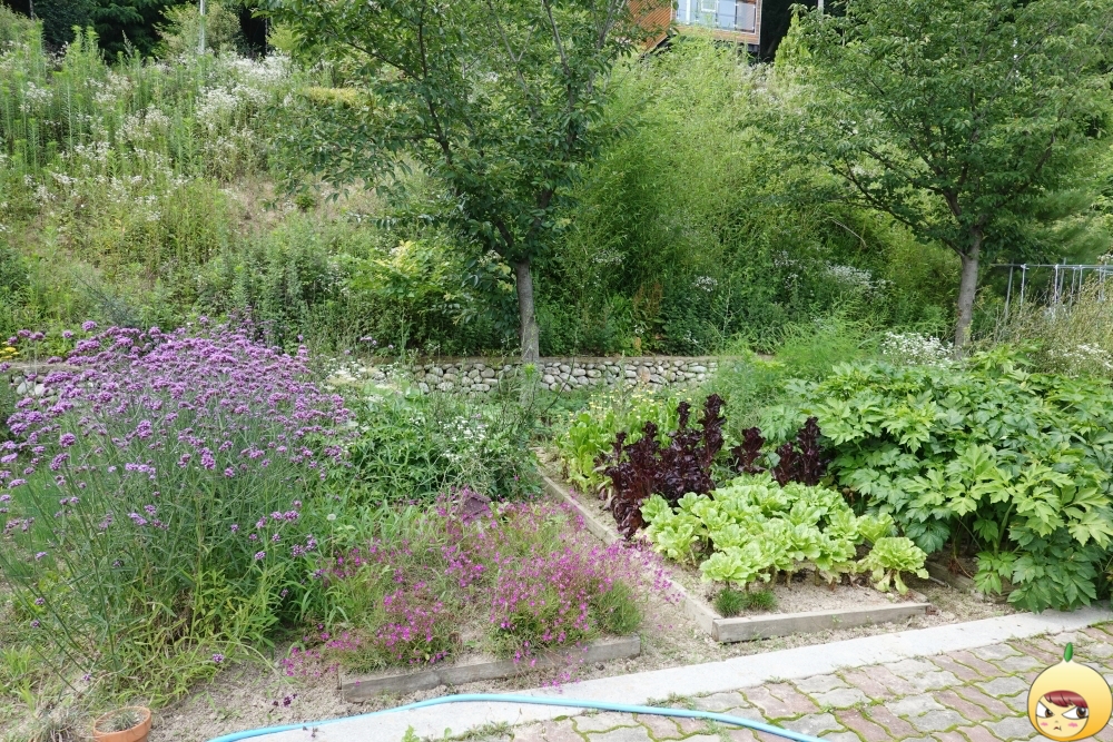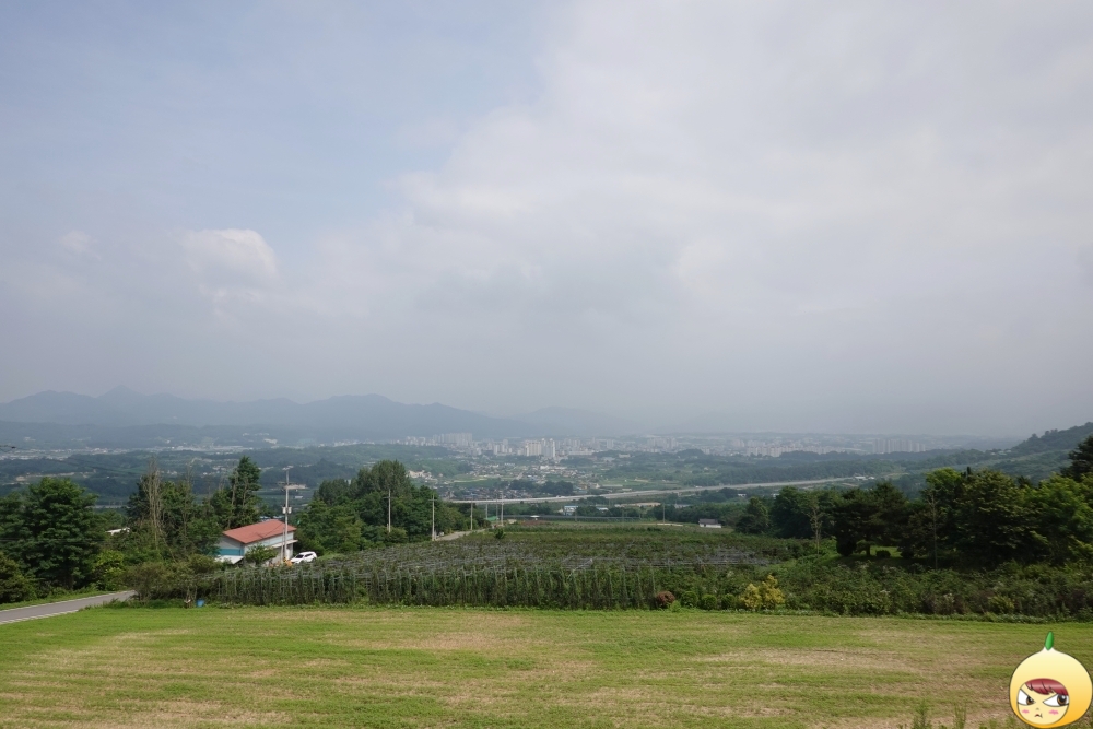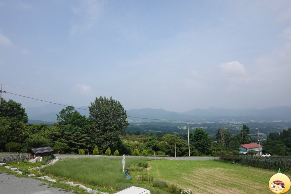 농장에 들어선 순간, 공기맛부터 다르더니 온통 초록초록 세상이다. 날씨가 흐려서 살짝 아쉽지만, 싱그럽고 깨끗한 공기는 도시하고는 확연히 다르다. 서울에서 거창에 올때까지 마스크를 벗지 못했는데, 지금은 살짝 벗어도 될 거 같다.