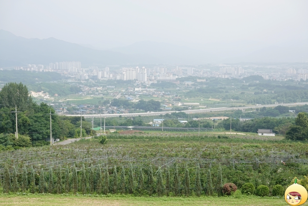 이수미팜베리는 아홉 개의 봉우리를 가졌다고 해 이름 붙여진 아홉산 자락에 자리하고 있다. 거창 시내가 내려다 보이니 전망은 좋은데, 산중턱이라서 차가 아니라 걸어서 온다면 고생(?)을 할 거 같다. 농장 입구에는 염소가 사는 작은 집(사진 왼편)이 있다는데, 염소를 만나지 못했다.