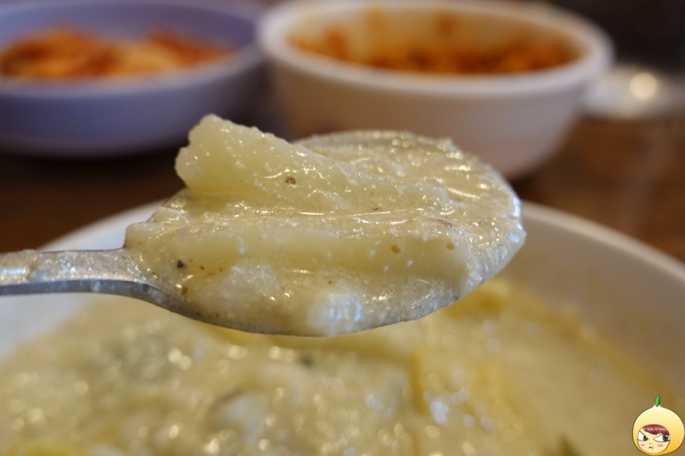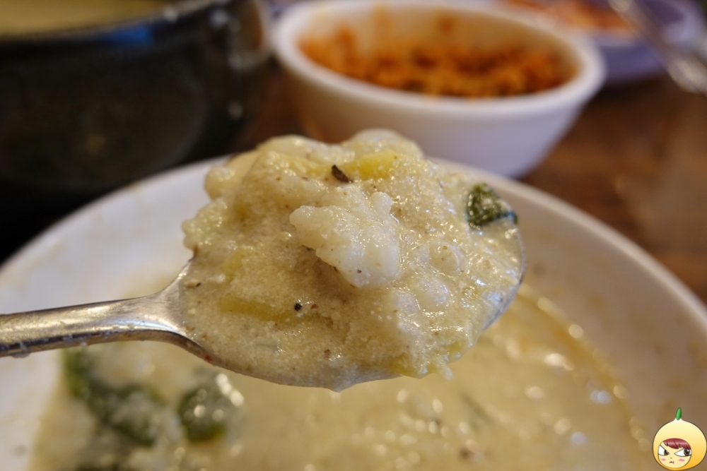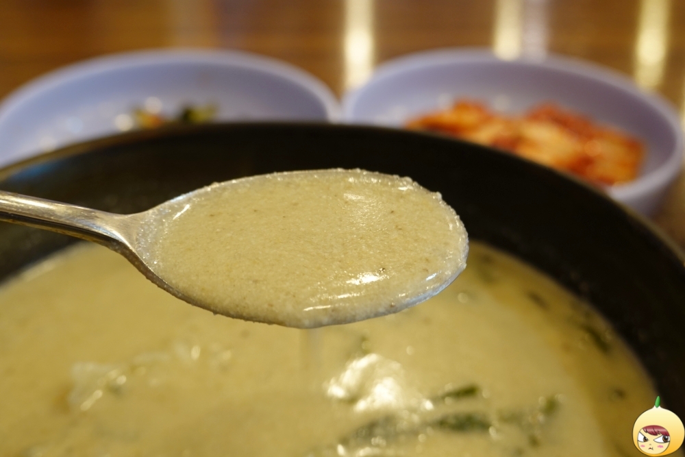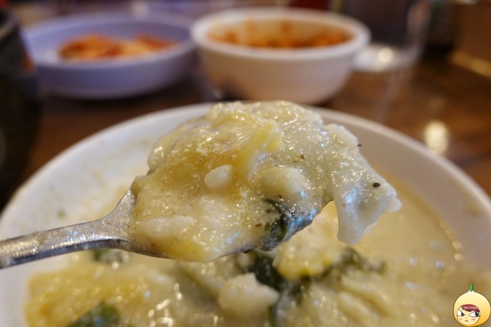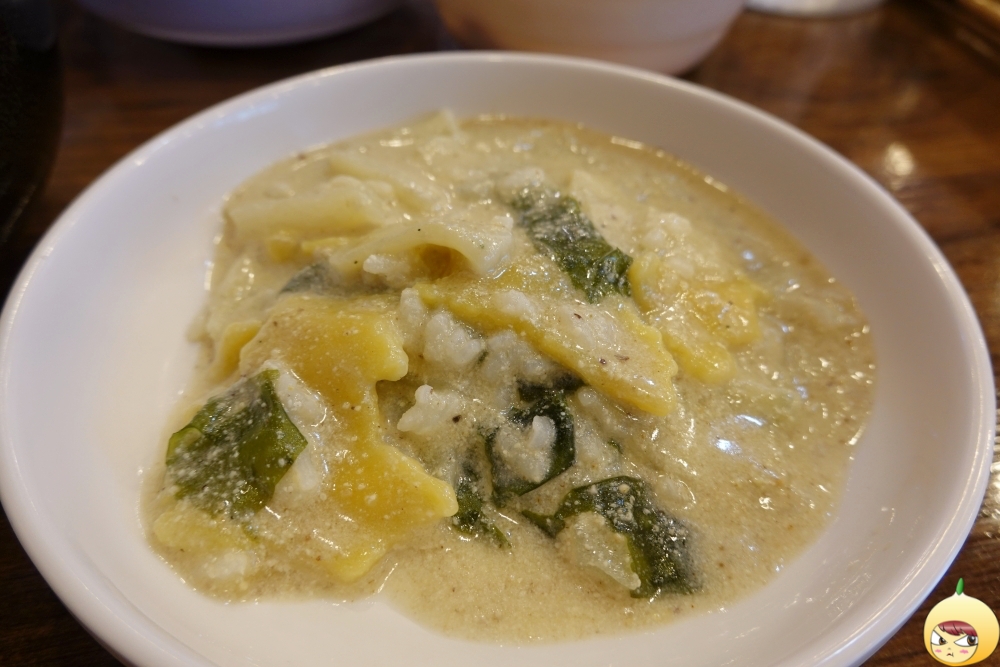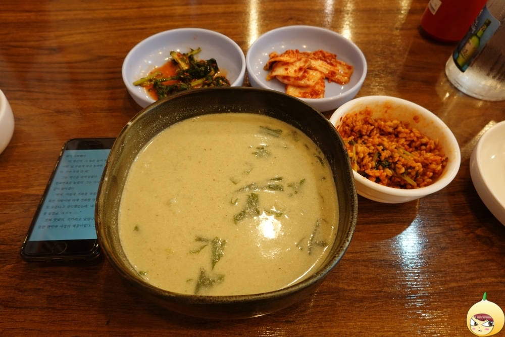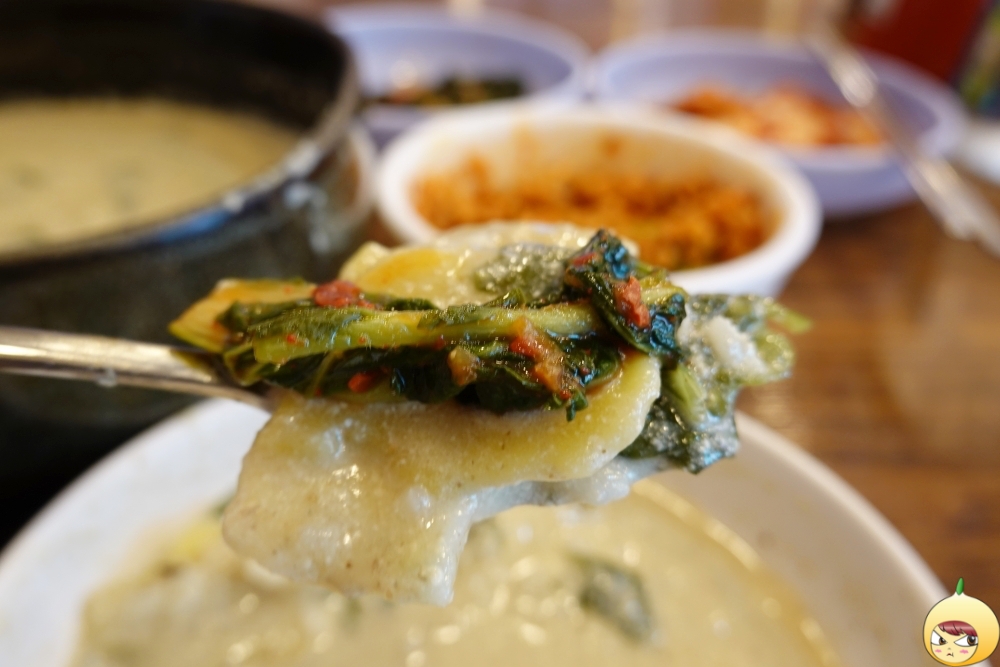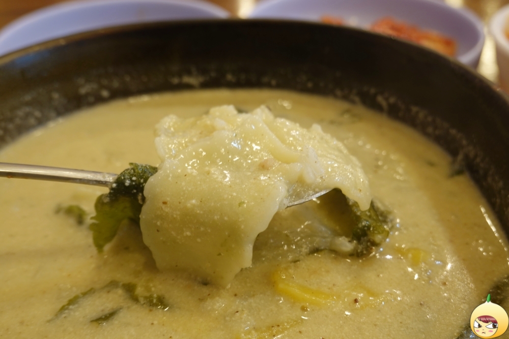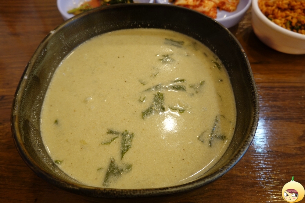어~ 수제비를 주문했는데, 그냥 국물만 나왔다? 아니다. 저 국물 아래 수제비는 꽁꽁 숨어있다. 걸쭉한 들깨 국물에 동동 떠 있는 건, 미역이다. 국물이 맑은 바지락과 달리, 들깨는 국물이 혼탁하다. 혼탁한 세상은 거부하지만, 혼탁한 들깨수제비는 매우 격하게 환영한다.