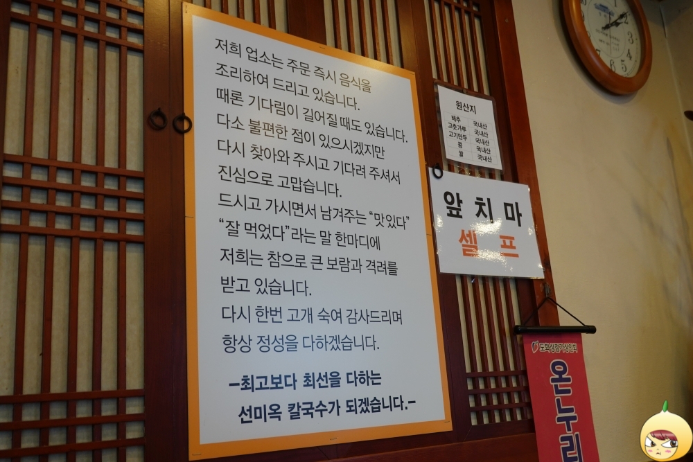 들깨가 알레르기성 체질개선에도 좋구나, 햇빛 알러지가 있으니 들깨 음식을 자주 먹어야겠다. 주문을 받고 음식을 만들기에 기다림이 길어질 수 있다는 안내 문구, 이런 기다림은 언제라도 환영이다. 그리고 선미옥은 그 기다림을 즐겁게 해주는 애피타이저가 있어 그리 길게 느껴지지 않는다.