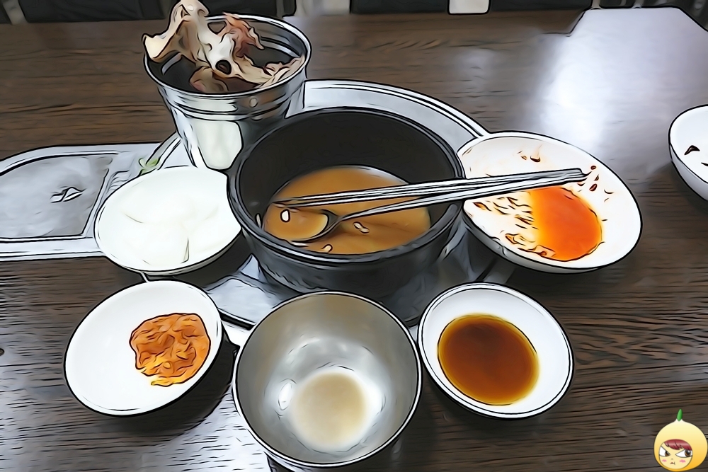 뚝배기가 겁나 뜨거우니 맨손으로 잡을 생각은 애초부터 안하는 게 좋다. 뼈때문이기도 하겠지만, 우선 푸짐하다. 부드러운 우거지 아래에는 커다란 뼈가 있고 그리고 부끄럼이 많은 선지는 국물 속에 숨어 있다.