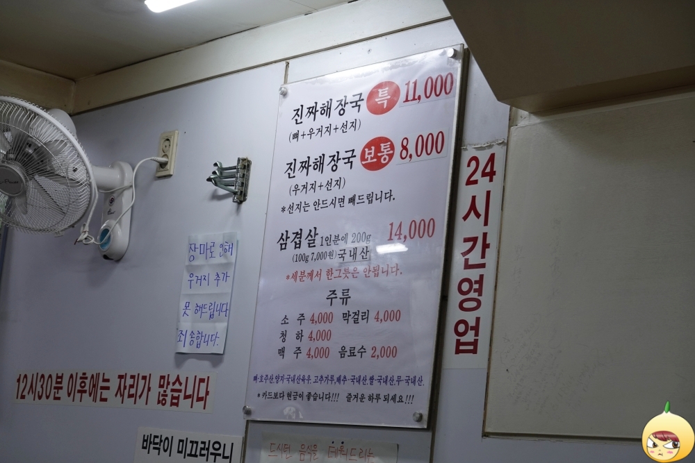 헬로 apm 건물 옆에 작은 골목이 있다고 지도앱은 알려주는데, 그 골목 찾기가 쉽지않다. 살짝 헤매긴 했지만, 영상에서 보던 골목이 나타났고, 그 끝에 대화정 진짜해장국이 있다. 최자로드에서 보던 그곳이 확실히 맞다. 24시간 영업이니 브레이크 타임은 없다.