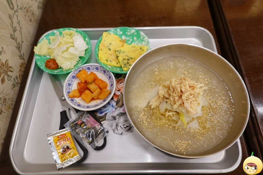 그냥 먹으면 담백하고 시원한데, 여기에 식초와 연겨자를 추가하면 담백에 시원 그리고 시큼함과 톡쏘는 맛이 더해진다. 평양냉면은 처음 나온 그대로 먹지만, 초계물냉면은 식초와 겨자를 추가하는 게 좋다. 이는 지극히 개인적인 취향이다.