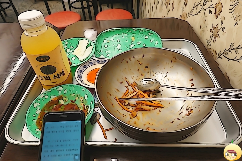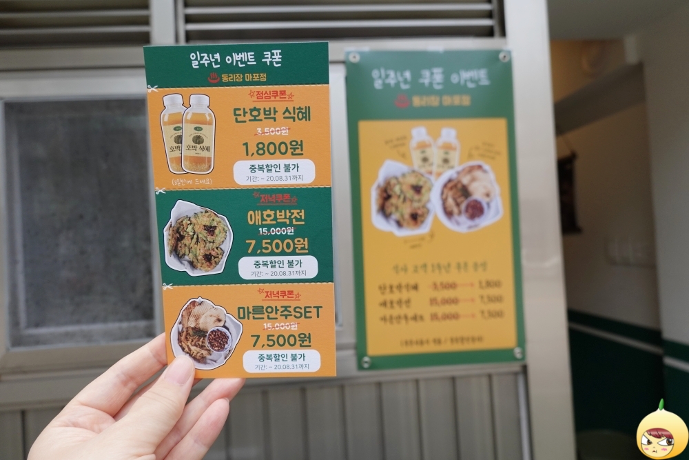 쿠폰을 받았으니 사용하기 위해 1주일만에 다시 왔다. 애호박전과 마른안주 세트는 저녁용이니, 점심용은 단호박식혜만 가능하다. 점심은 주로 키오스크를 이용하는데, 쿠폰 적용이 안된다고 해서 직원이 따로 계산을 해줬다. 만약 쿠폰을 들고 간다면, 주문은 기계가 아니라 직원에게...
