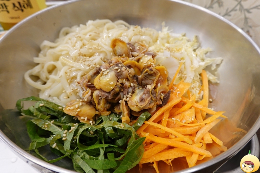 소면과는 다른 칼국수면발만의 매력이 있다. 오동통하고 쫄깃한 면발은 입안 가득 복스럽게 먹어야 좋다. 연출용으로 파스타처럼 돌돌 말았는데 들고 있기 힘들 정도로 꽤 묵직하다.