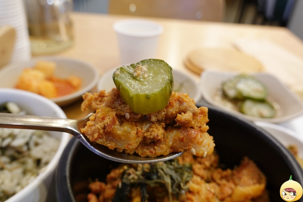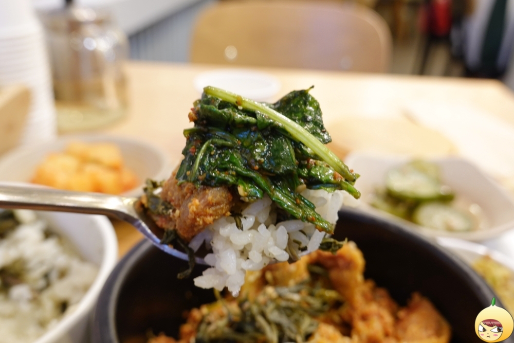나물은 묵나물인 듯 싶고 은은한 나물향이 입맛을 돋운다. 그런데 일반 공기밥에 비해 밥그릇이 크긴 하지만, 밥이 그릇에 반도 차지 않을만큼 양이 적다. 따로 공깃밥 추가도 없던데, 양이 적어도 넘 적다.