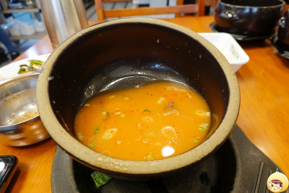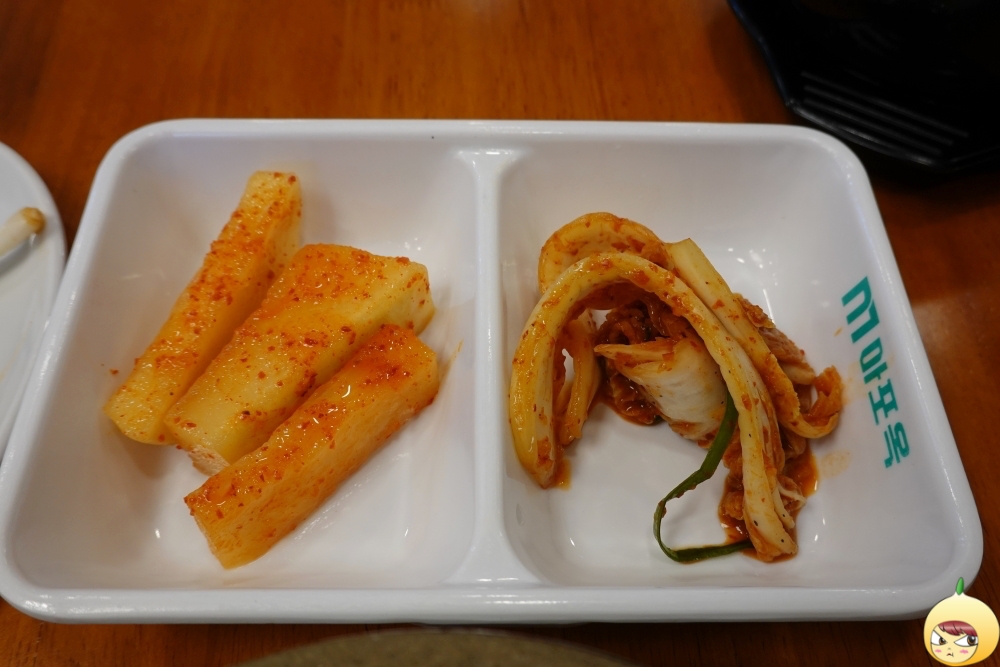 뚝배기 가득 김치가 있는 줄 알았는데, 양이 겁나 조금이다. 그런데 1인용 김치라고 하기에는 양이 많다. 앞접시도 따로 있고, 아무래도 코로나19라 김치를 일부러 조금씩 주는 거 같다. 참, 빨간국물은 깍두기국물이다.