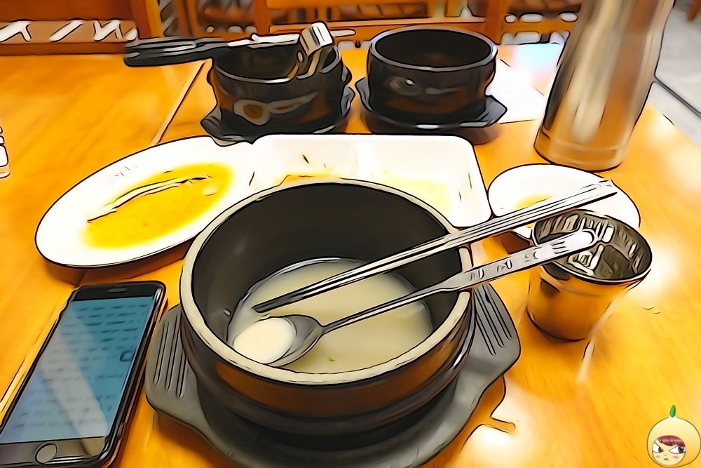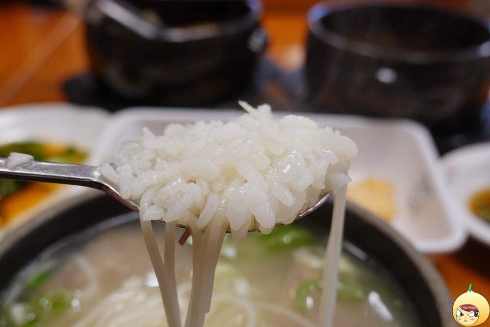 소면과 밥은 따로가 아니라, 탕에 들어있다. 면은 뭉쳐있지만, 밥은 토렴을 했는지 풀어져 있다. 밥 알 하나하나 국물로 코팅을 했는지, 윤기가 돈다.